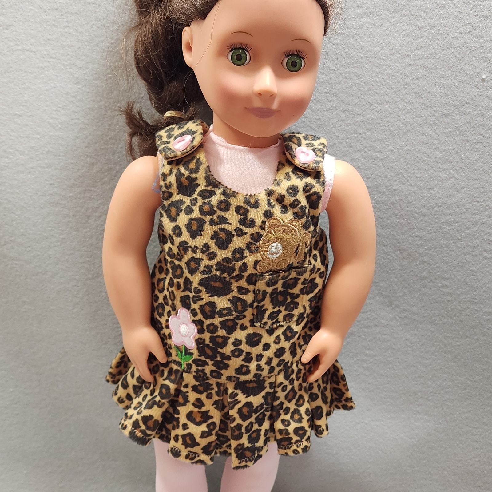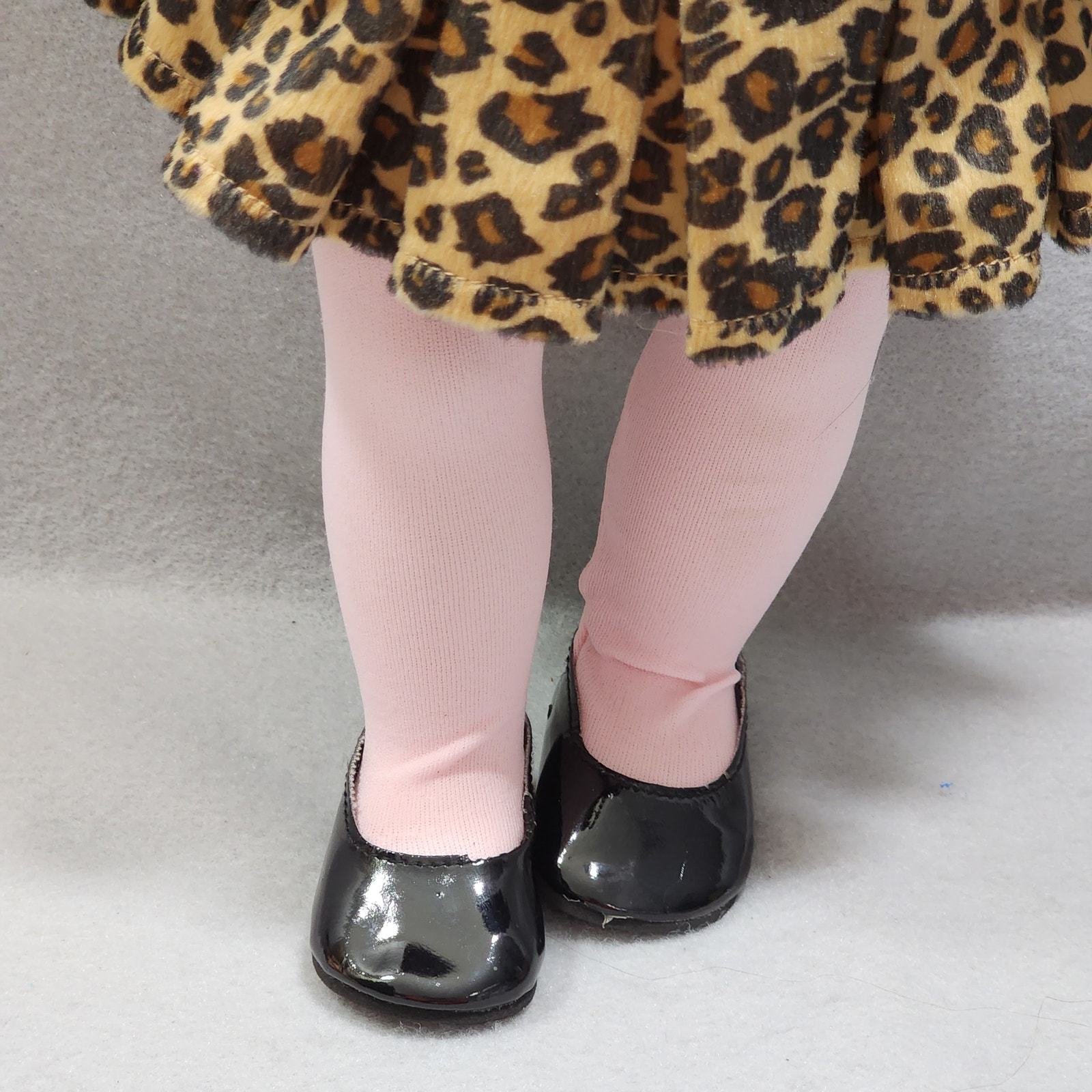 Leopard Animal Print Dress and Faux Black Leather Flats Shoes Fits 18" Dolls