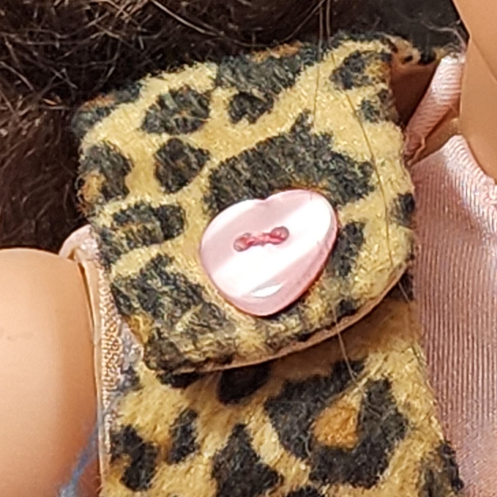Leopard Cheetah Animal Print Dress and Faux Black Leather Flats Shoes Fits 18" Dolls