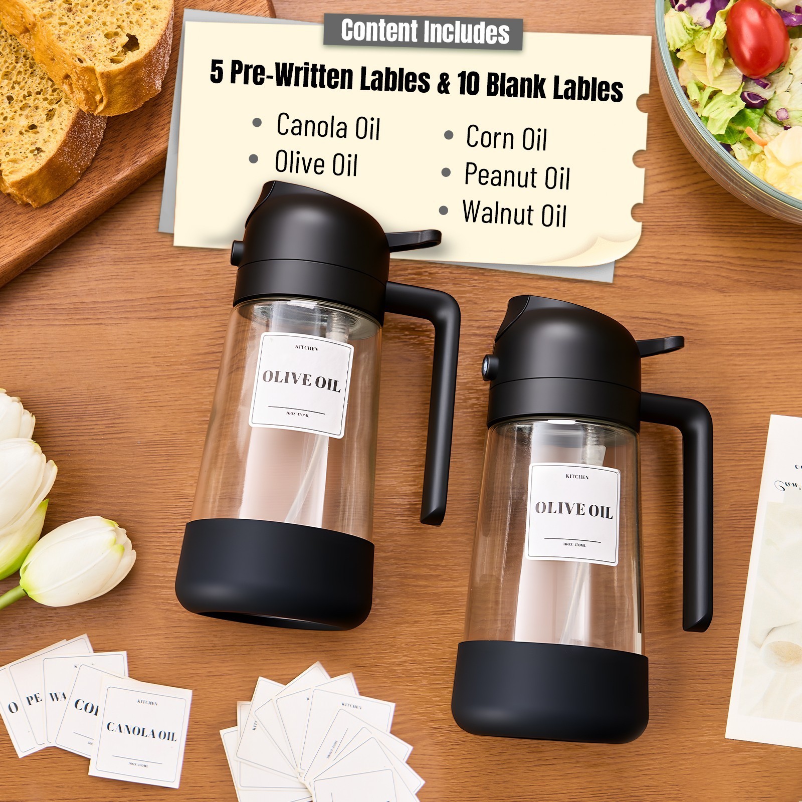 ?2-in-1 Spray Pour Functionality?This innovative oil dispenser combines both spraying and pouring functions into one sleek bottle. With its built-in dual-purpose nozzle, you can switch between a fine mist spray and a controlled stream with a simple twist. The olive oil sprayer is perfect for various cooking needs, from frying and sauteing to baking and salad dressing, making it an essential smart tool for any modern kitchen.