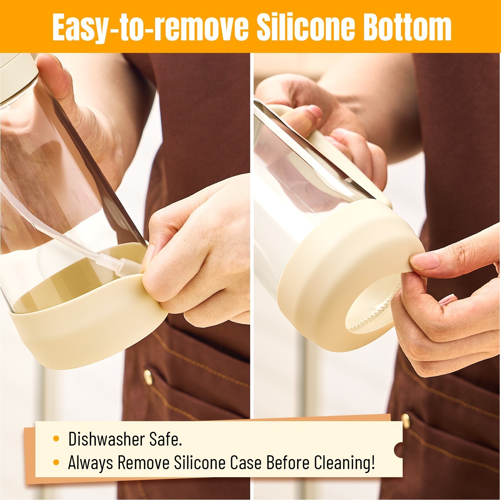 ?Upgraded Non-Slip Noise-Reducing Base?Exclusive new upgrade! Features a detachable silicone sleeve at the base. The oil dispenser bottle provides superior stability, preventing slips and scratches on countertops, tables, or smooth glass stovetops. The base also significantly reduces clattering noise when placed down, offering a quieter cooking experience. The sleeve is easily removable for thorough cleaning without any hard-to-reach areas.