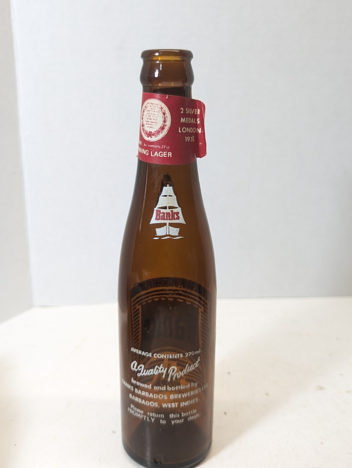 1978 BARBADOS BANKS BREWERY FRESH BEER BOTTLE Brown Amber