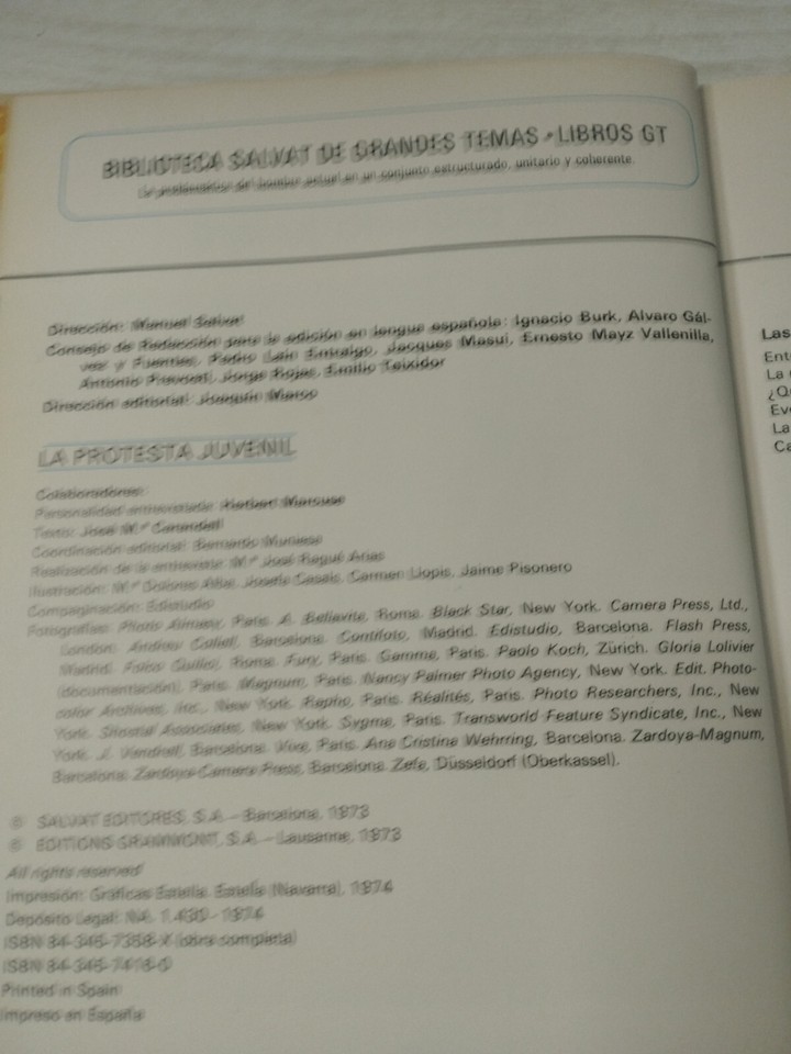 The youth protest Salvat Library grandes Themes Vol 58 - Spanish Book Am