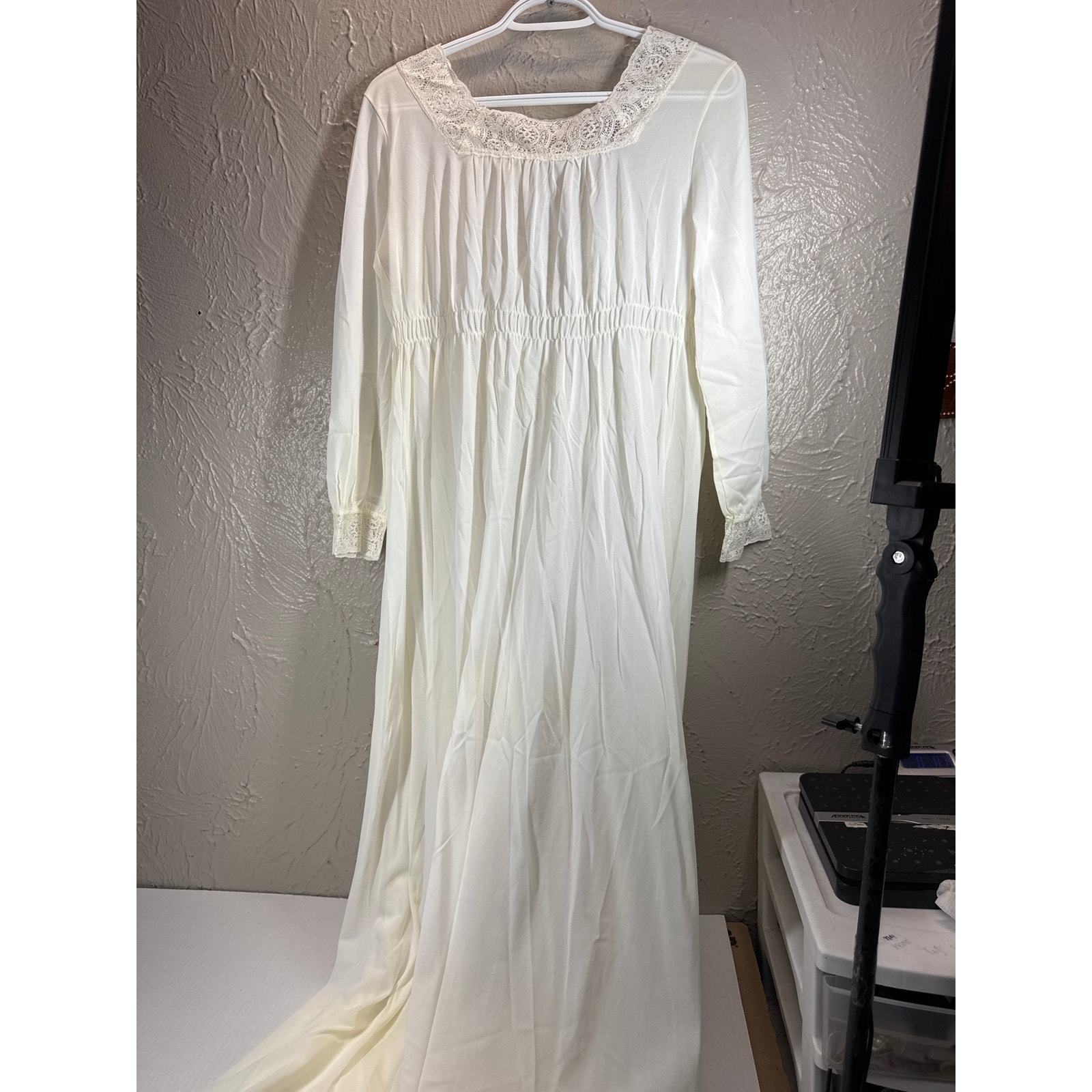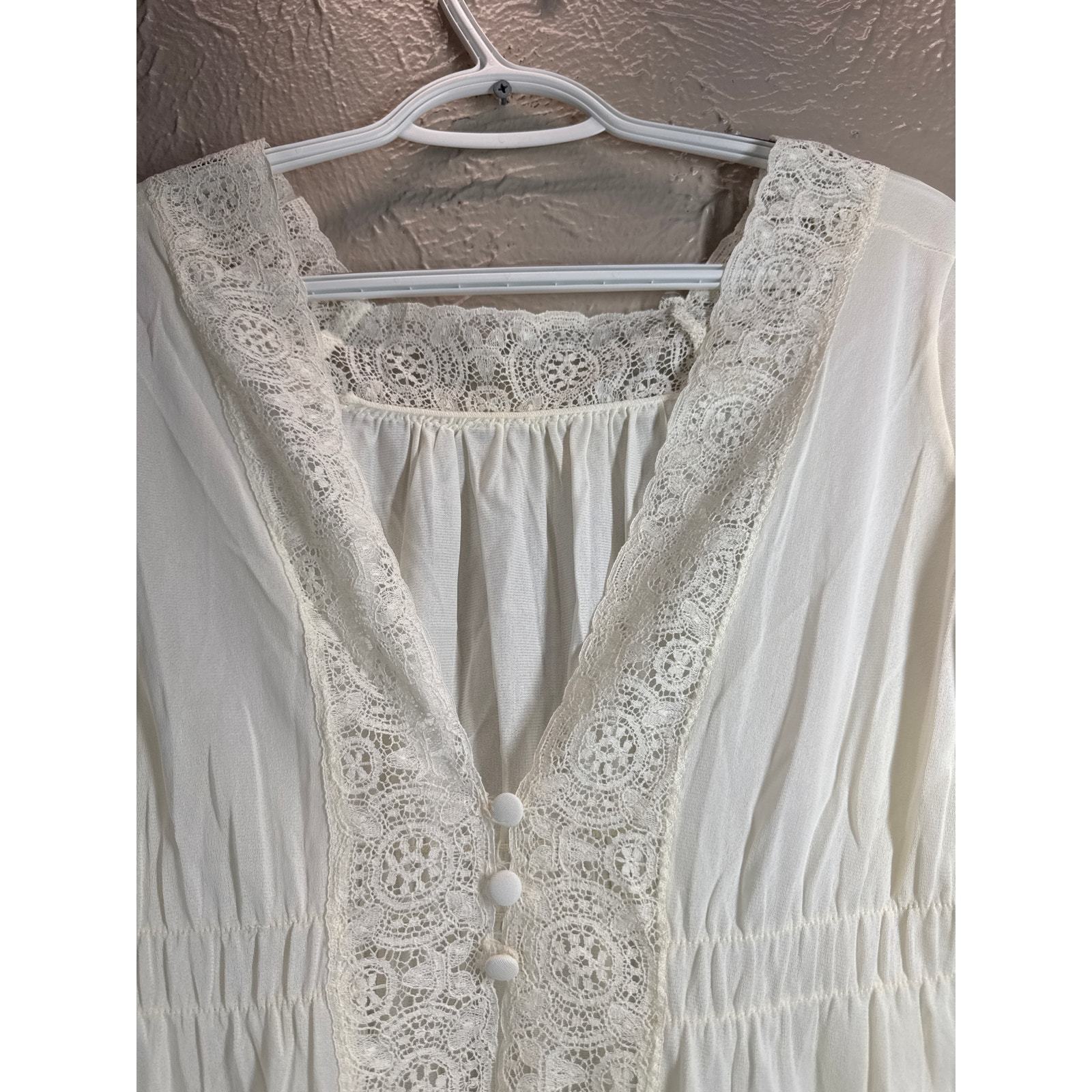 Miss Elaine Semi Sheer Ivory Lace Trim Robe Peignoir Lingerie Nightgown Vintage