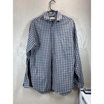 Calvin Klein Mens Button Down Gray White Long Sleeve Dress Shirt Size 16 34/35