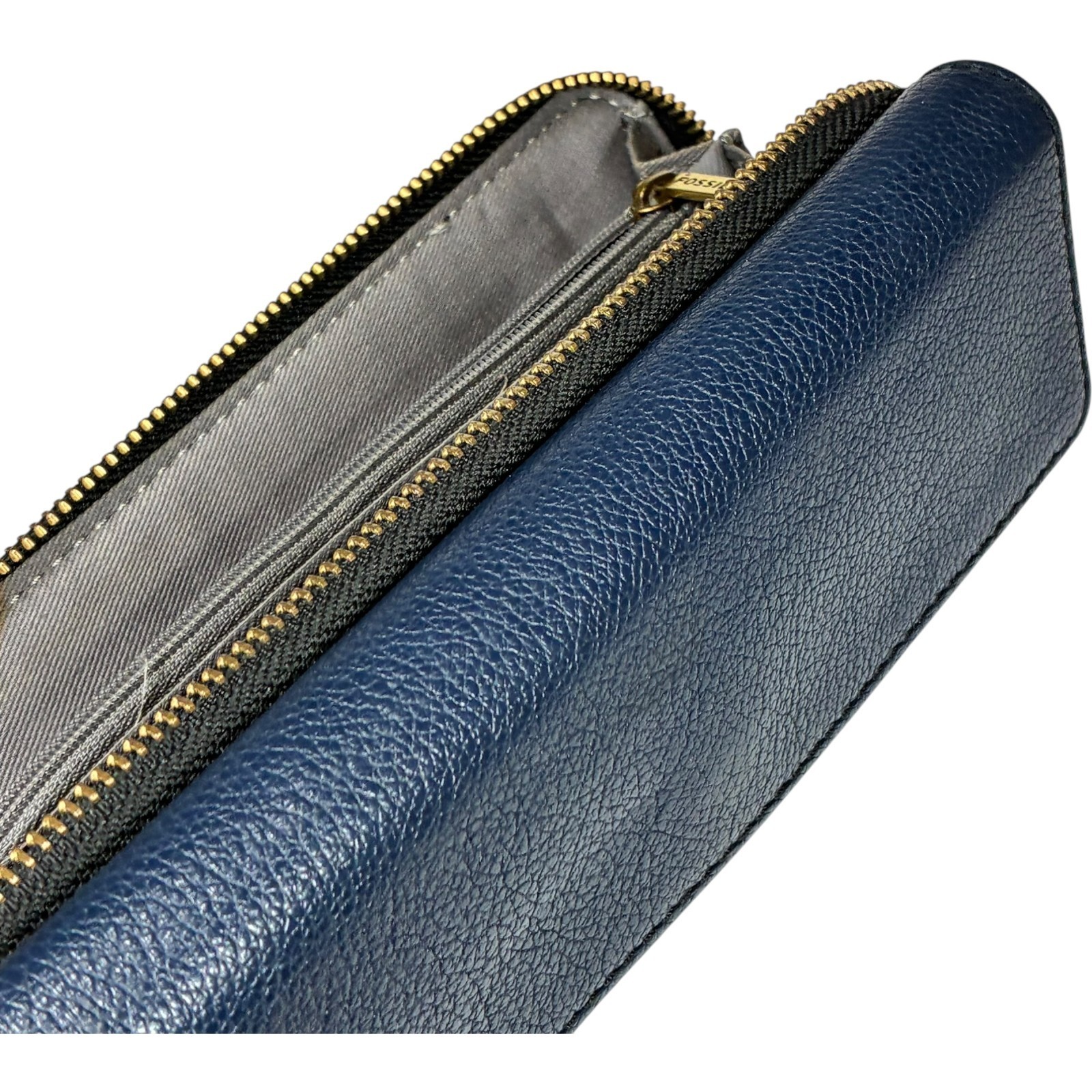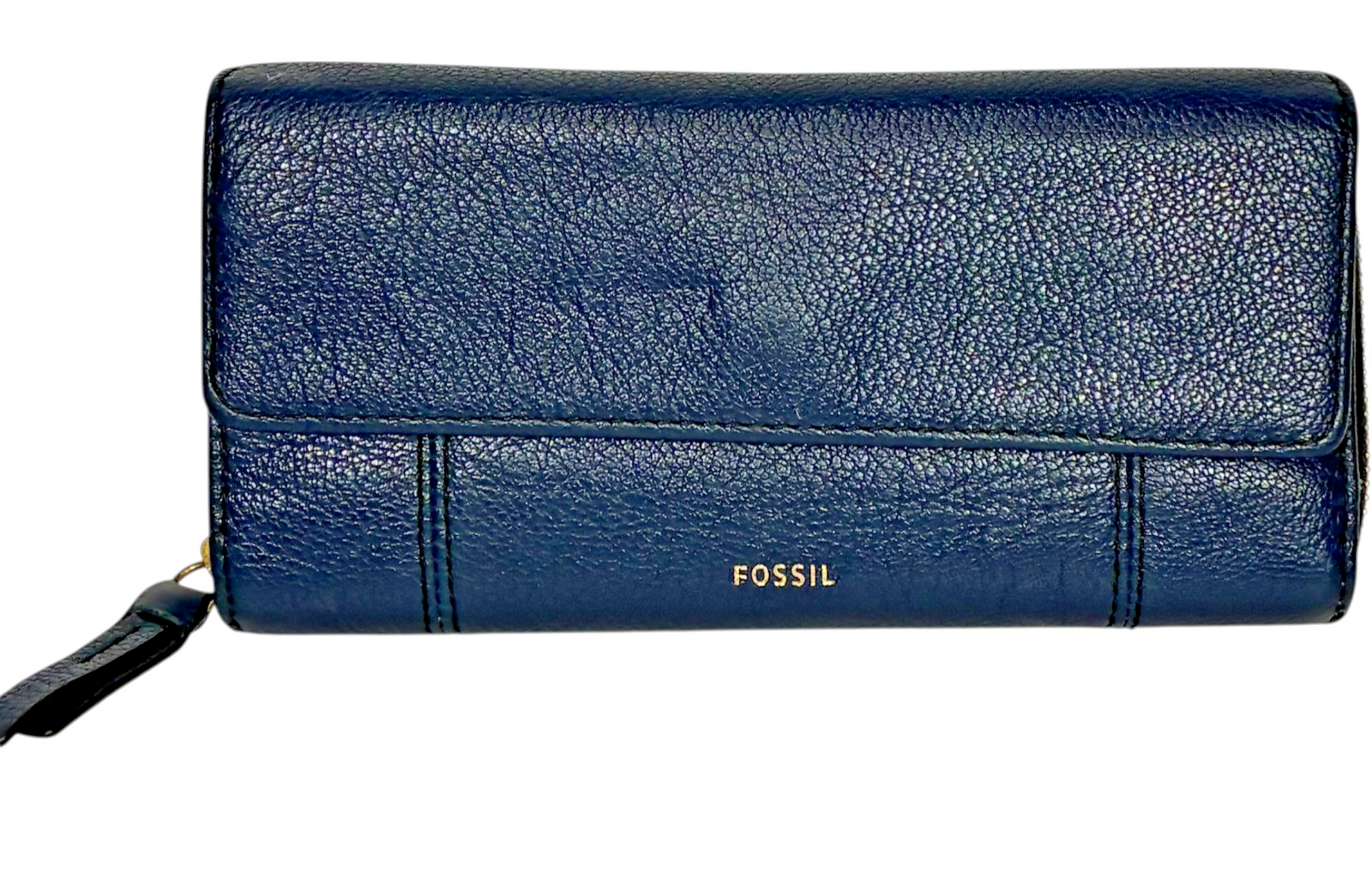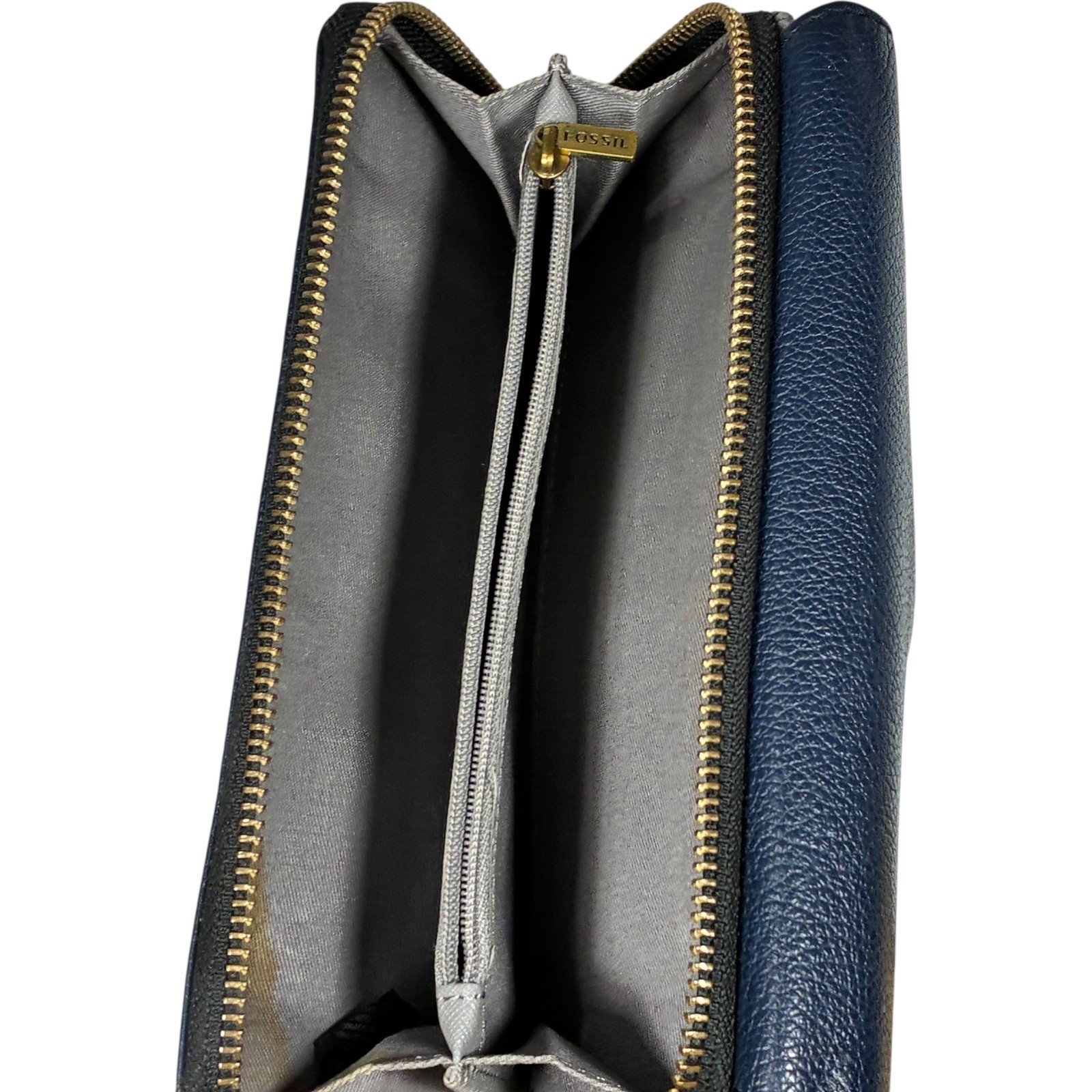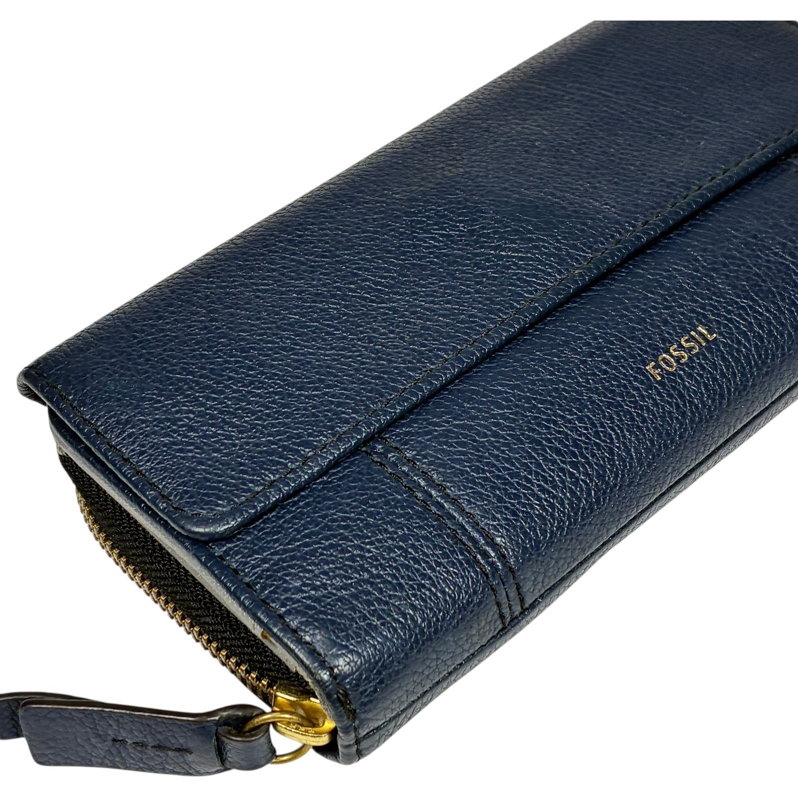 Fossil pebbled navy blue leather zip-around snap-fold - READ