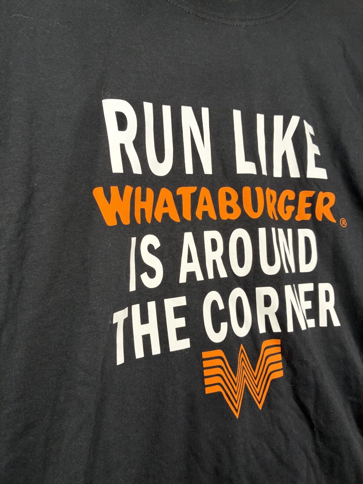 Whatburger Black Men's XL Tee Shirt "Run Like Whataburger Is Around the Corner"
