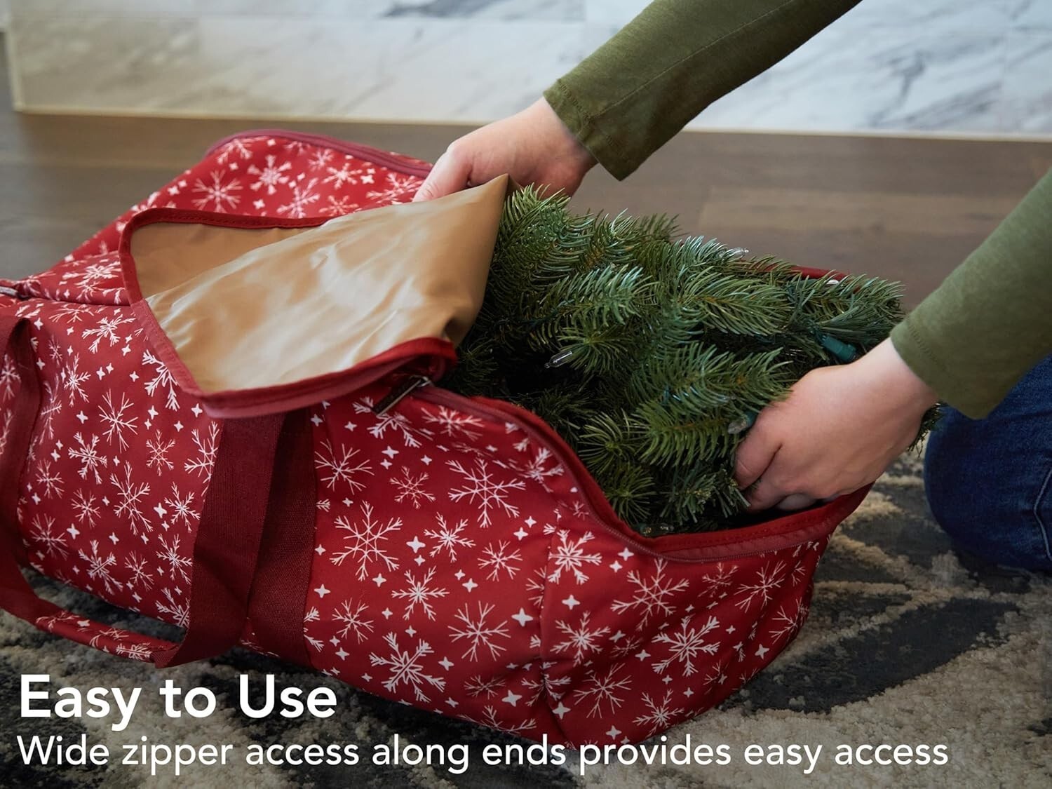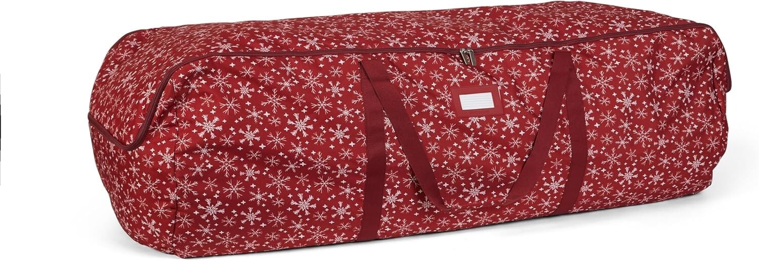 Ensure easy and durable holiday cleanup with the Heavy-Duty Christmas Tree Bag. Crafted from reinforced polyester, this resilient bag resists punctures and tears, offering superior protection for your Christmas tree, toppers, and decorations. Features include reinforced handles for easy transport and a heavy-duty D-ring for upright storage convenience. Sized at 48W x 24D x 18H, it accommodates larger trees and branches, while versatile enough to store garlands, tablecloths, or seasonal apparel. Backed by a 3- , this bag guarantees quality and peace of mind. Discover the perfect solution among Covermates' broad range of Christmas storage options, including wheeled totes and rolling bags, designed to simplify your holiday organization.