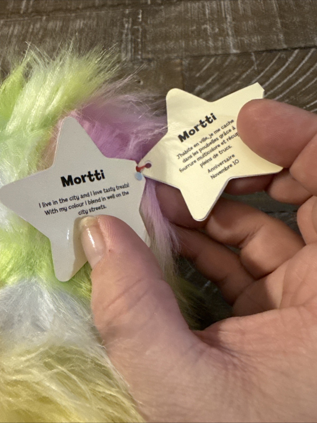 The Lumo Stars Mortti Hedgehog Plush is a small, multicolored stuffed animal with big eyes. This adorable hedgehog is part of the Lumo Stars brand and was released in 2018. It is designed to be fluffy, making it ideal for children ages 3 and up to play with and cuddle. Perfect for adding a touch of cuteness to any collection of stuffed animals.