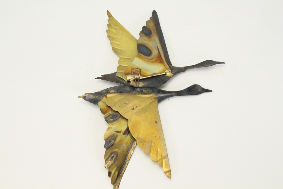 Vtg MCM Metal Brutalist Styled Flying Geese Duck Wall Hanging Set 60s Home Decor