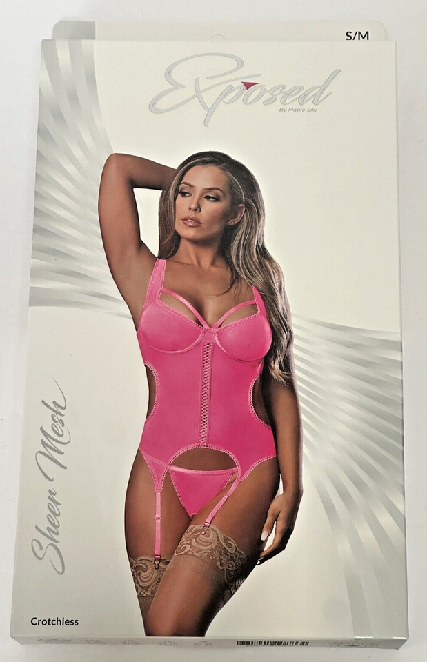Sexy Sheer Mesh Merry Widow & Crotchless G-string Pink Small/Medium