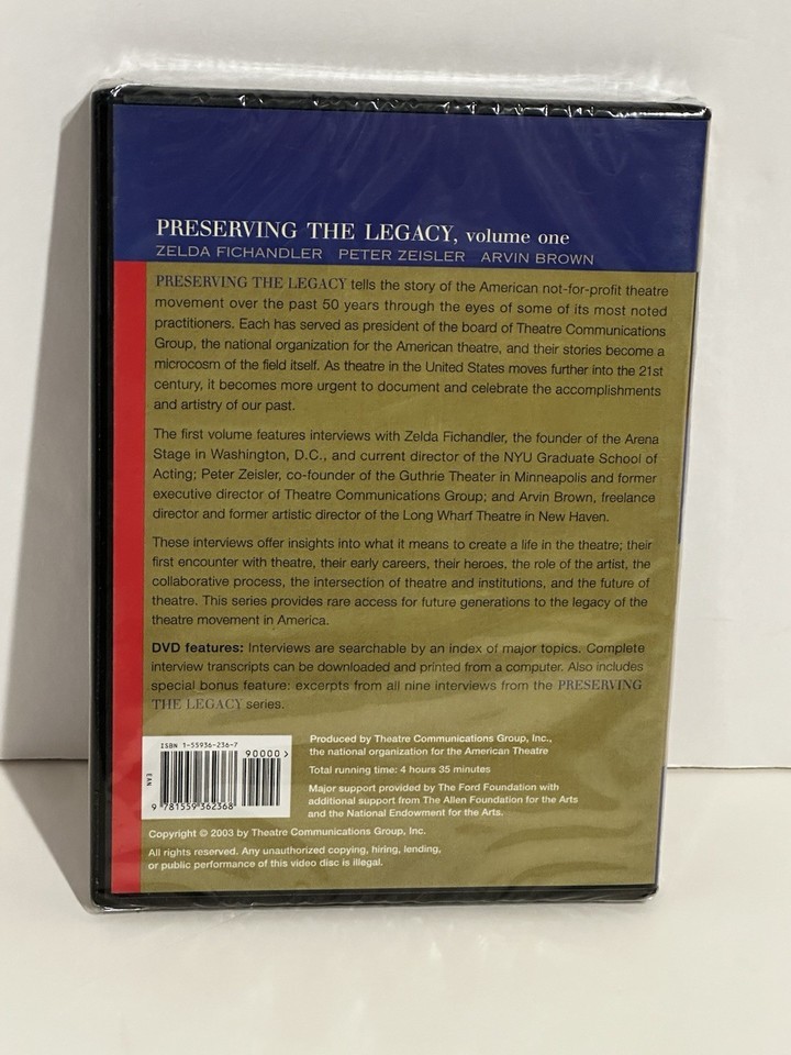 Preserving the Legacy, Vol. ONE DVD: by Fichandler, Zeisler , Arvin Brown- New