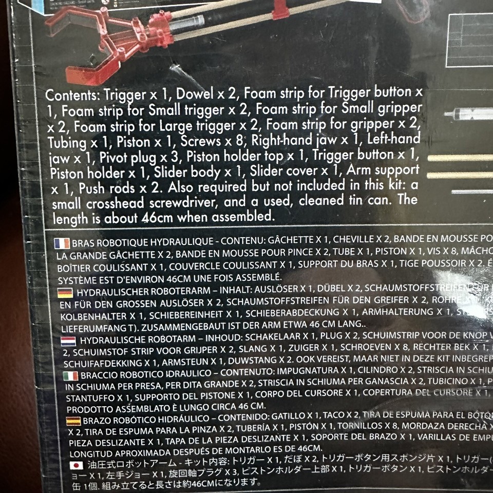 Includes robot arm parts and instructions. Arm is 19.75 inches long. For ages 8+.