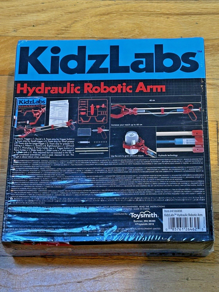 4M Toys Hydraulic Robotic Arm by KidzLabs Science Toys. Explore simple hydraulic principles and build a working mechanical arm that can move and grab. The realistic gripper can lift, move and grab a wide range of objects, all without electricity.