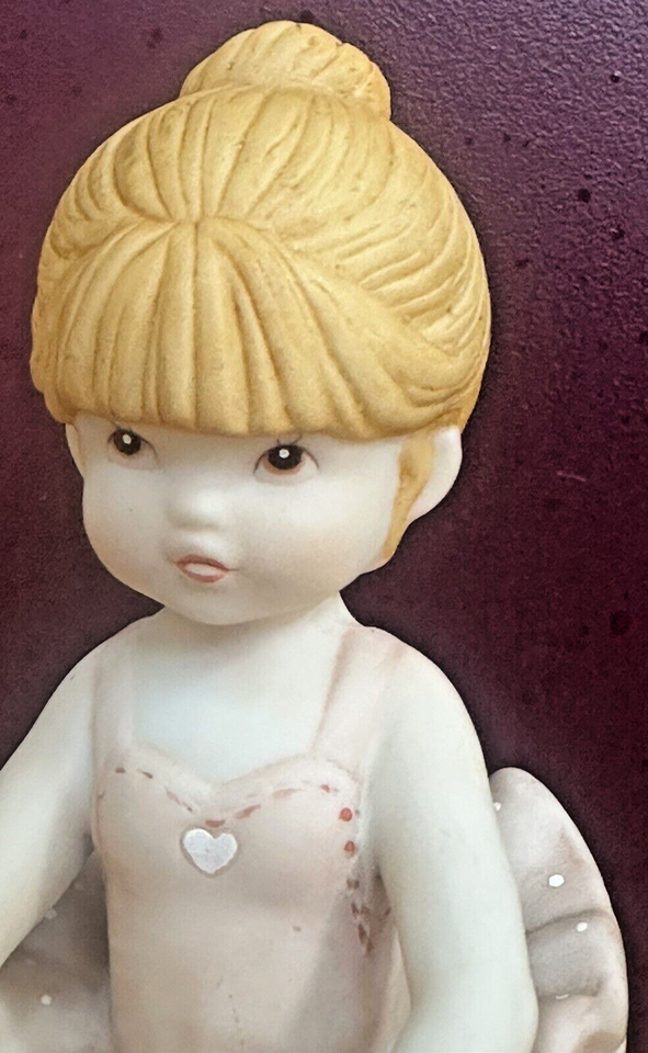 Add an enchanting touch to your collection with this rare vintage 1987 Enesco figurine. This rare ballerina collectible is crafted from porcelain and feature delicate shades of pink that add a touch of elegance to any room. The ballerina is bisque porcelain. The ballerina is 6 inches tall and 2 1/8 inches wide. Her pink tutu has white polka-dots and has a little white heart on front. Designed by G.G. Santiago