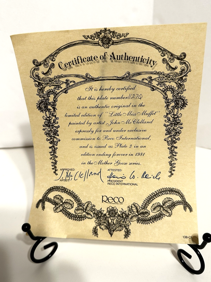 Vintage 1981 Little Miss Muffet Mother Goose Series Collectors Plate W/COA Box