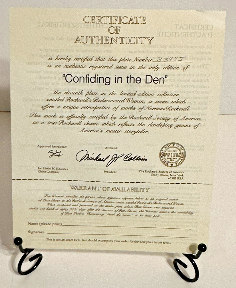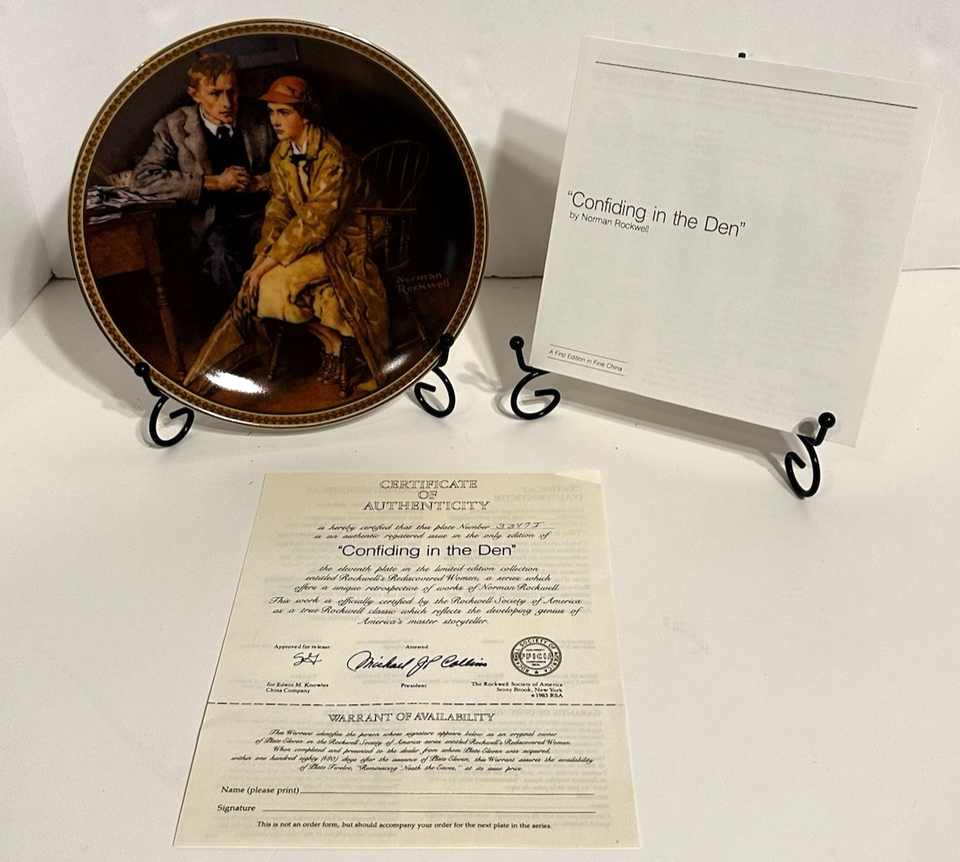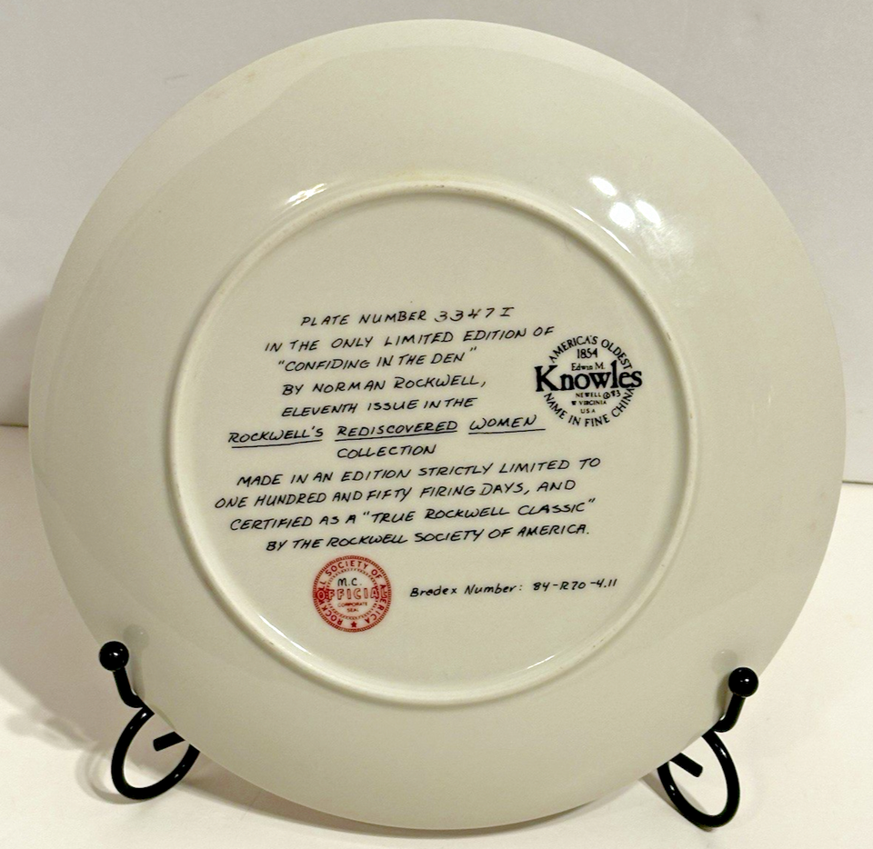 Norman Rockwell "Confiding in the Den" Vintage 1983 Collectors Plate W/COA & Box