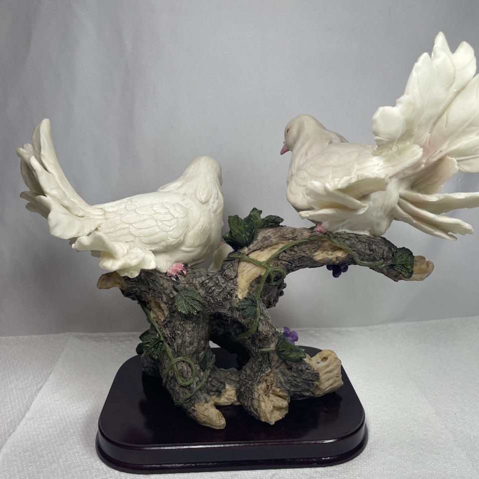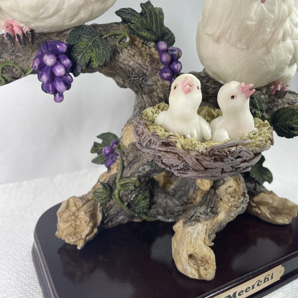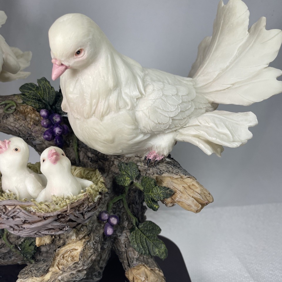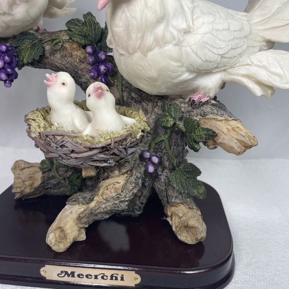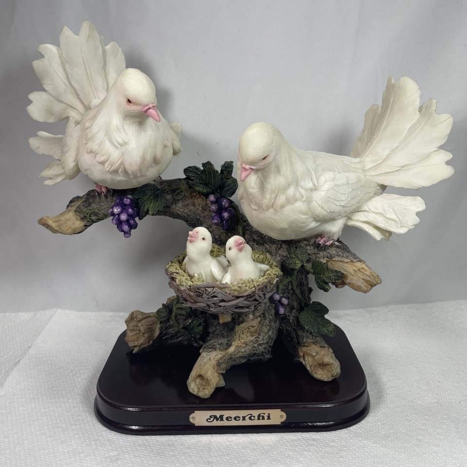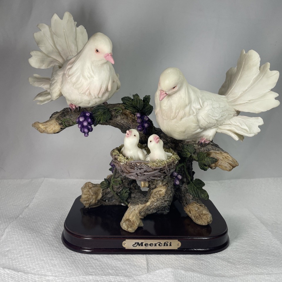 Meerchi White Dove Family With Babies Figurines With Wood Base
