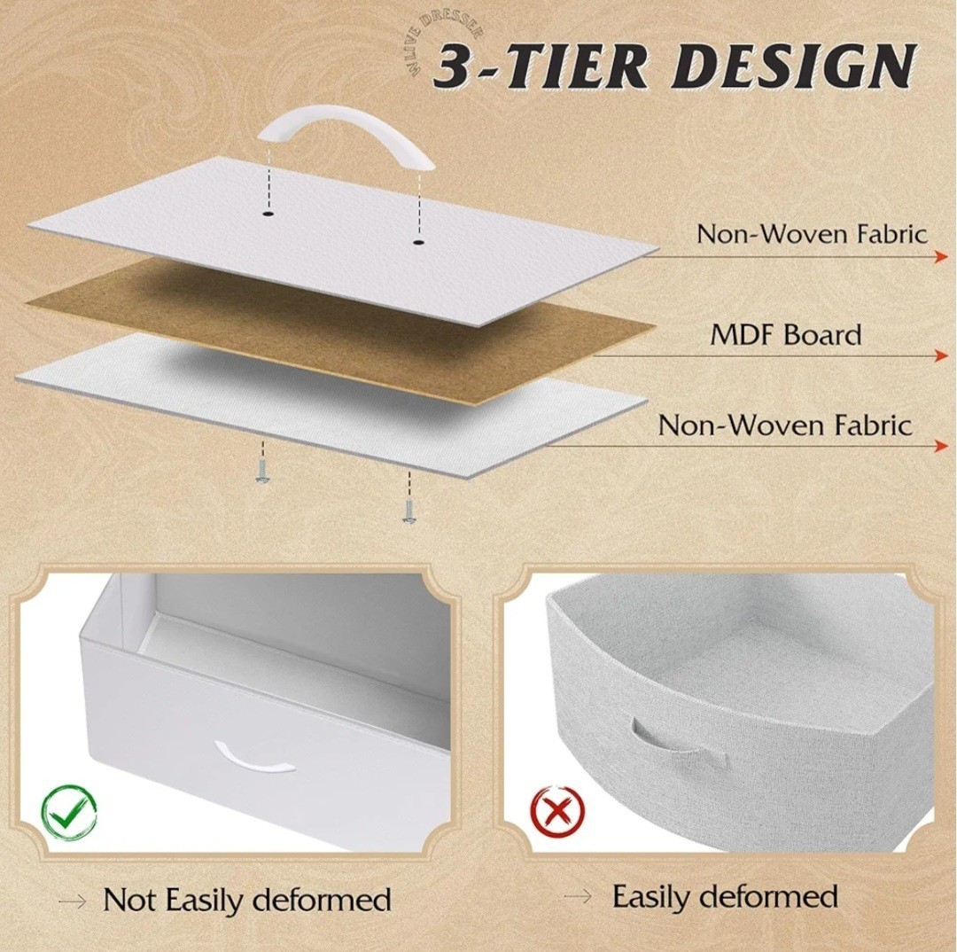 Sturdy and Durable: Strong steel frame, wooden top and high-grade non-woven fabric offer stable support and ensure years of use. The tall dresser has anti-tipping accessories to prevent incidents.