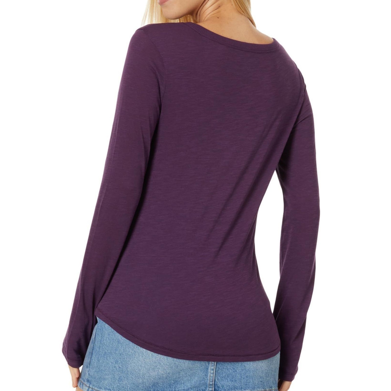 Perfect for everyday wear and easy to dress up or down. Keywords: Madewell tee, Whisper Cotton, rib crewneck, long sleeve, Smoldering Plum, 100% cotton, women?s XS.