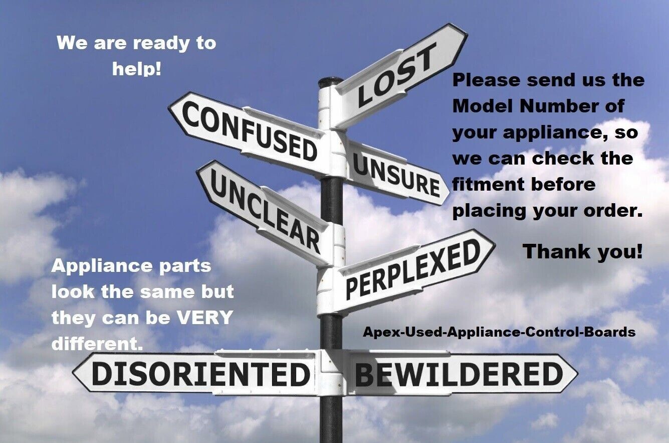 This is a factory original used part. The best way to assure this is the correct replacement for your appliance is to match the part number on the sticker of your original board, to the number listed in the title of this ad. (See picture)