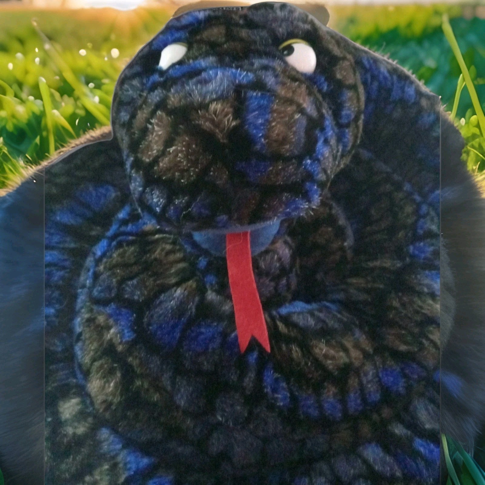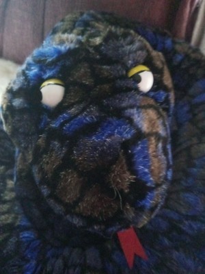 The black and blue color scheme adds a playful and vibrant touch to this large 10 foot long snake plush, making it a delightful addition to any toy collection.