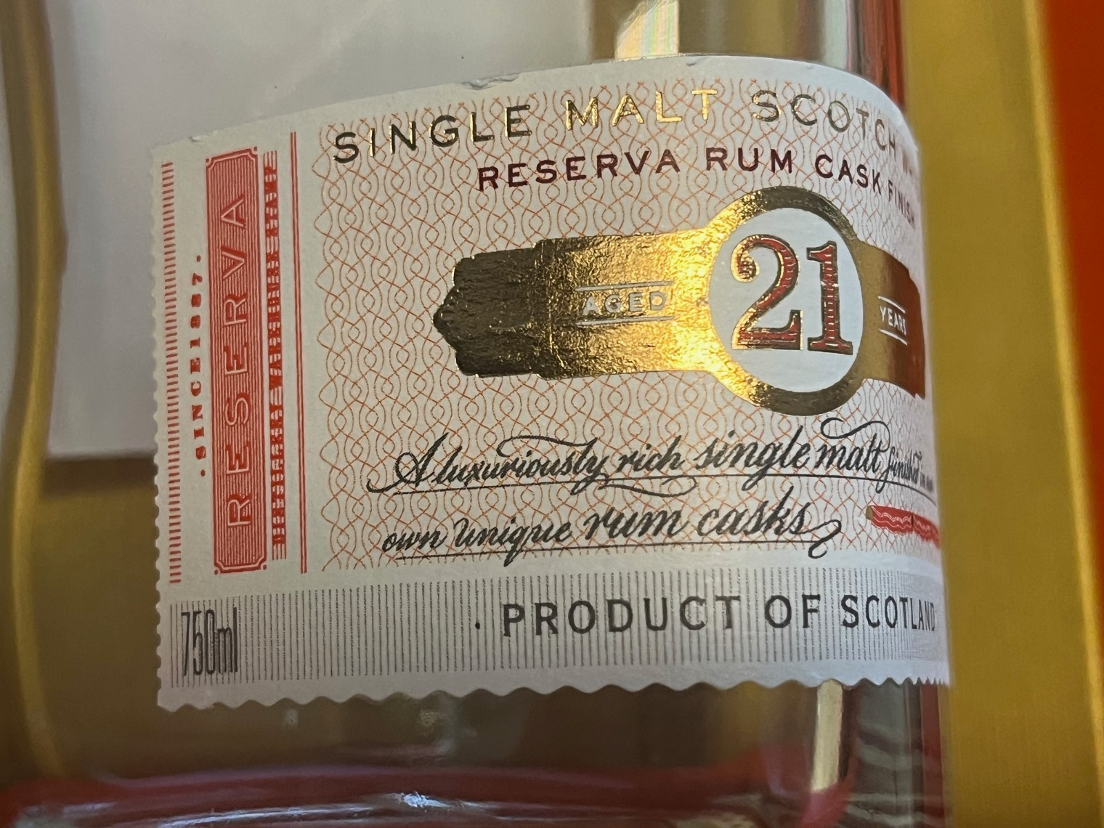 Glenfiddich 21 Years Single Malt Scotch Whisky Reserva Rum Cask?empty bottle only. Original bottle in great condition; perfect for collectors, display, crafts, or as a replacement for full sets. This elegant bottle is from Glenfiddich?s 21-year-old, Caribbean rum cask-finished single malt Speyside whisky.