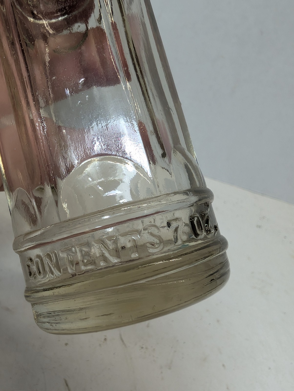 Nice clear bottle. No chips or cracks. 8.25" tall.