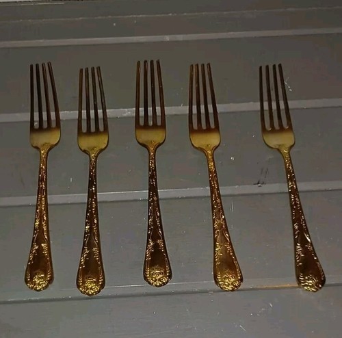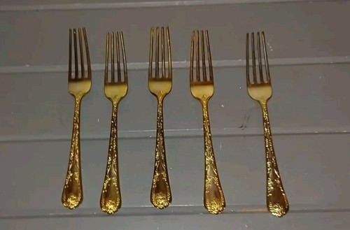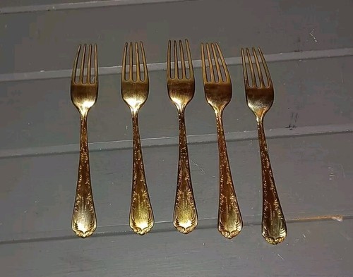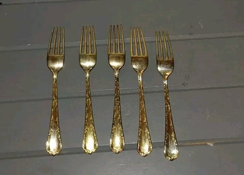 WM Rogers and Sons Dinner Forks Enchanted Rose Gold Plated Flatware Set of 5