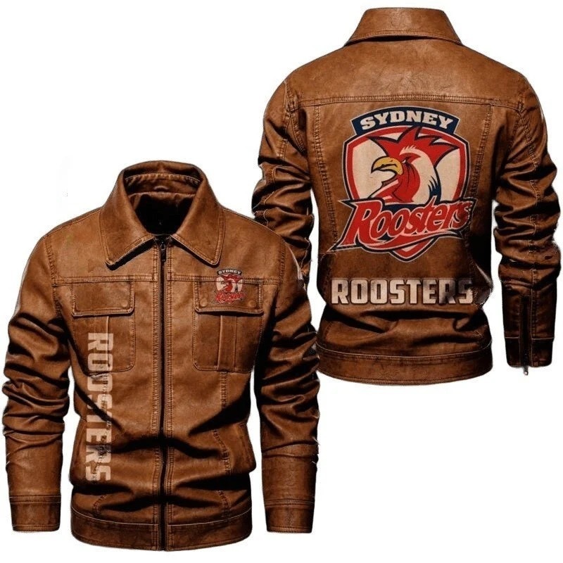 Show off your Roosters pride in serious style with this Sydney Roosters Leather Jacket, built for fans who like their gear with attitude. With a bold moto-inspired design and detailed team sticker emblems, this jacket delivers a street-smart edge while repping one of the NRLโs most iconic clubs.