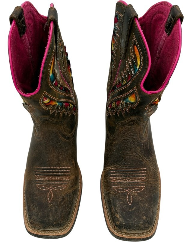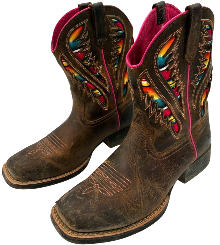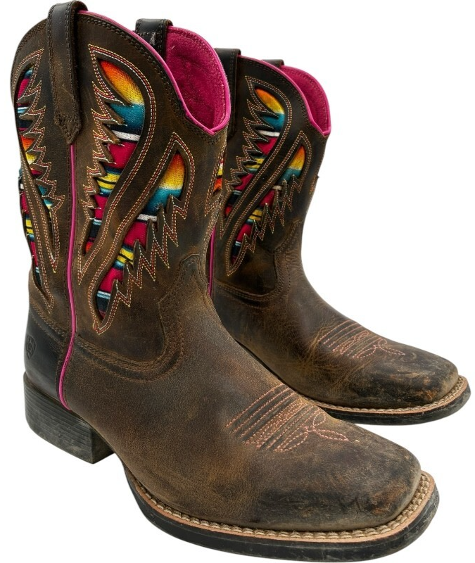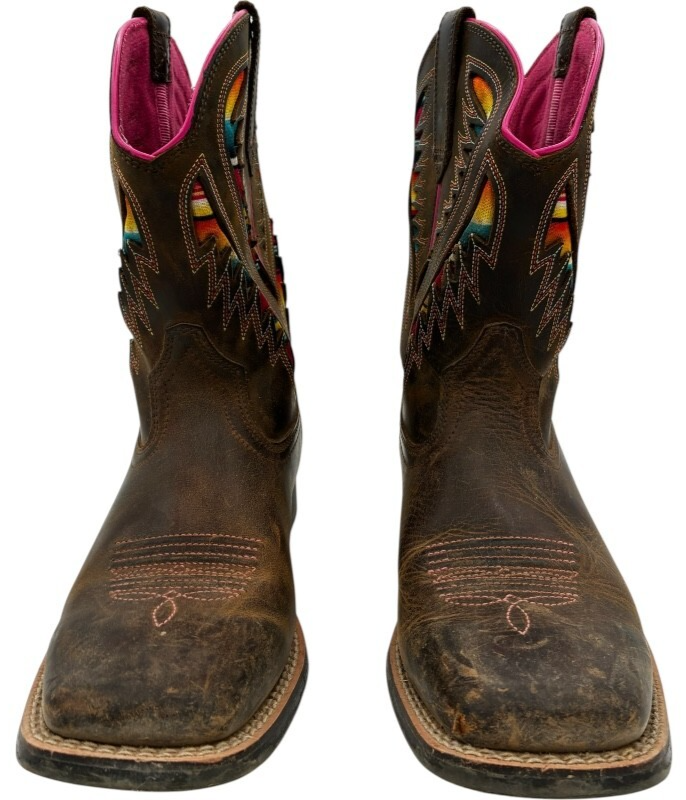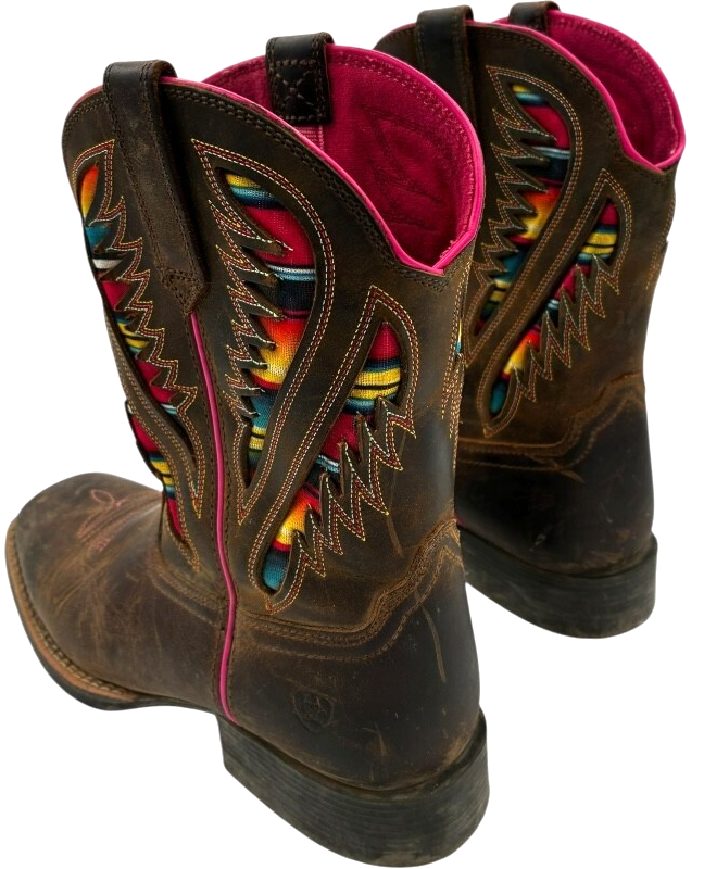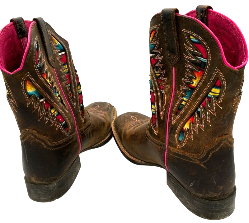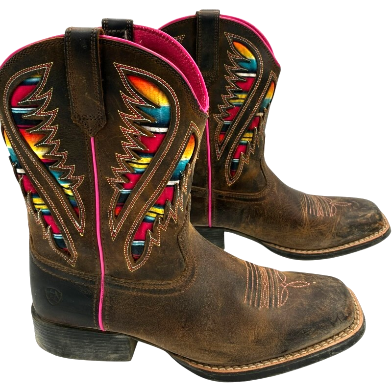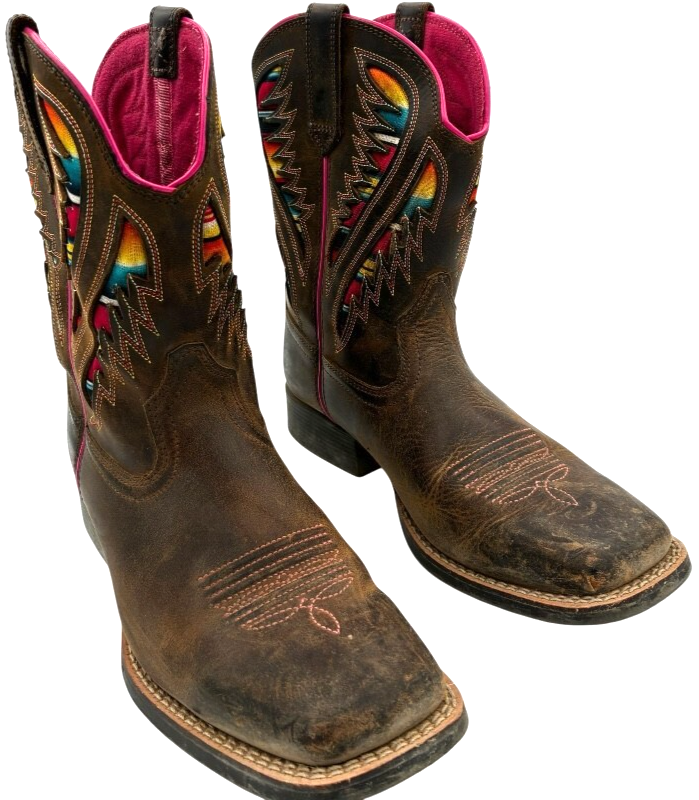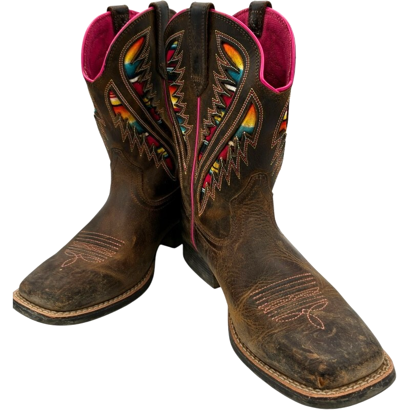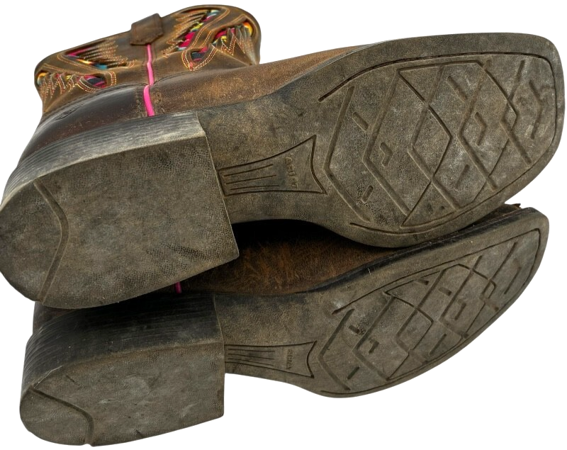 Ariat Kids Quickdraw VentTEK Western Boot Distressed Brown Serape Shaft size 4