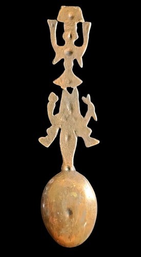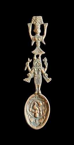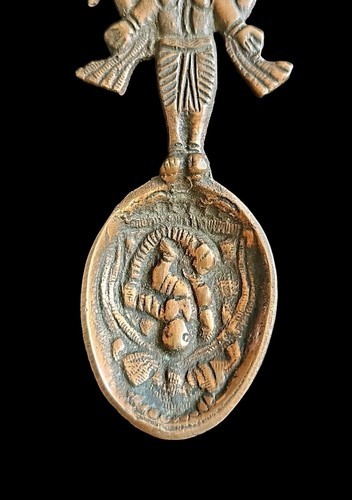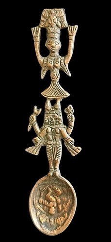 UP FOR SALE: Vintage Indian Hindu Goddess Krishna Ritual Spoon Brass Tone 6 1/2"