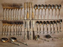 Stanley Roberts Gold Valentine Electroplate Floral Pierced Flatware 44 pc Set