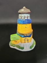 UP FOR SALE: Ceramic Lighthouse Trinket Box Yellow Blue Green Ceramic World 3.5 In