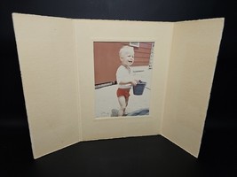 Vintage Photograph Cute Little Boy Holding Bucket Playing With Water