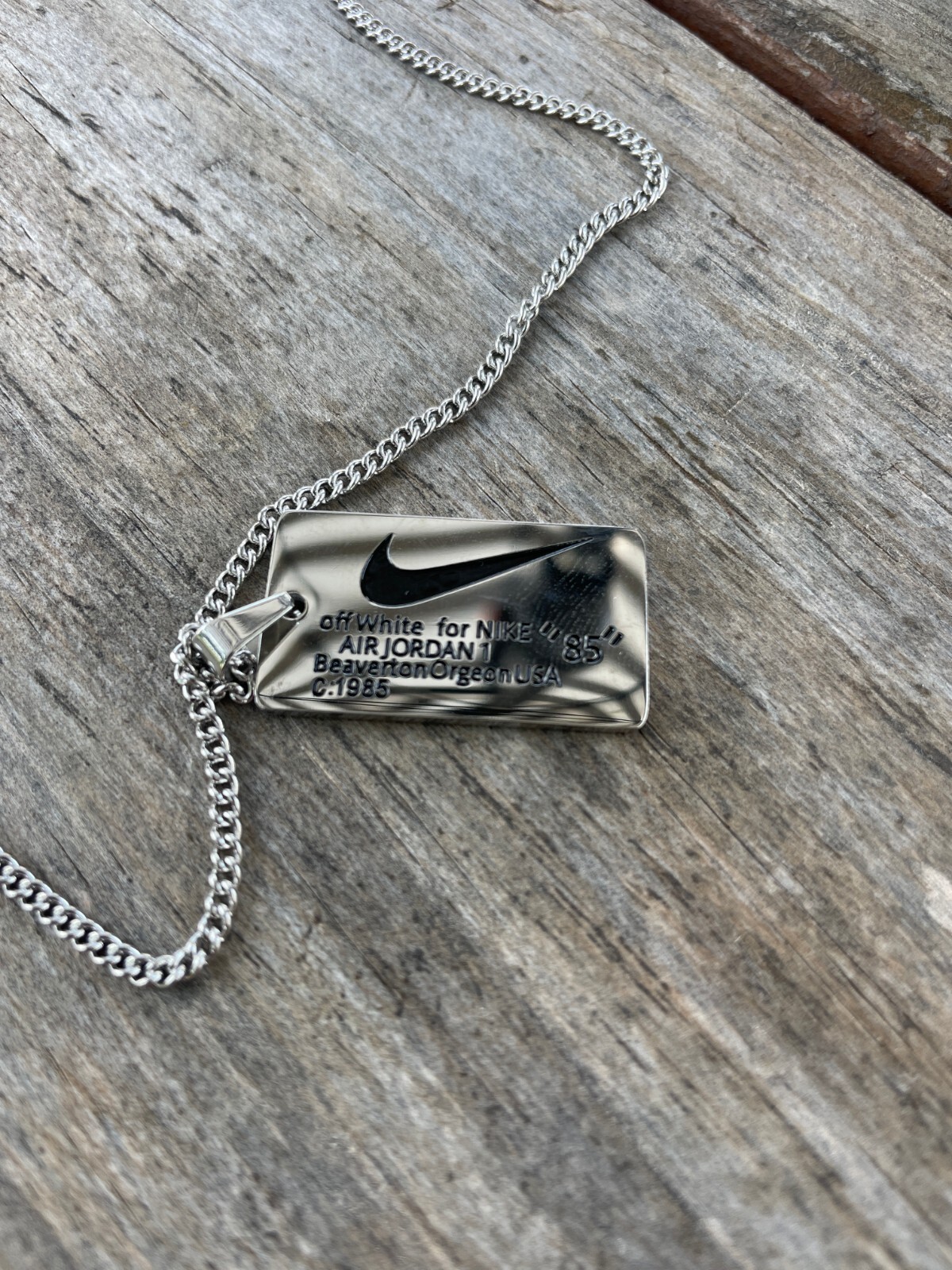 NEW Nike SILVER NECKLACE Stainless Steel 20" CHAIN DOGTAG ADJUSTER SWOOSH