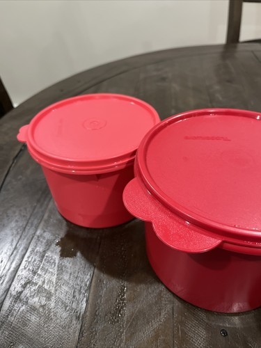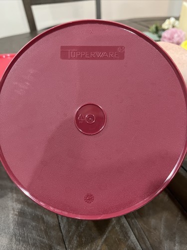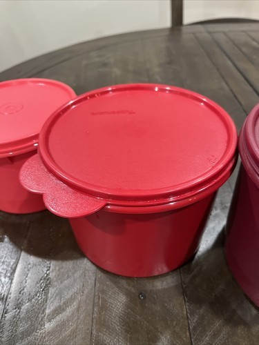 Tupperware Set of 3 Round Canisters Pink 1 Qt 263 2 Qt 264 Maroon 3 Qt 265