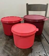 Tupperware Set of 3 Round Canisters Pink 1 Qt 263 2 Qt 264 Maroon 3 Qt 265.