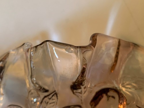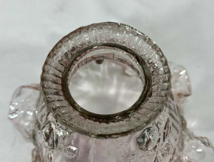 In good shape! Has a small area of rough glass - I think factory made with a slight bit of excess pressed- out - see last image. Does have a very small nick in the top lattice, very hard to see, without being pointed out. Both very minor and does not distract or will not effect the function at all.