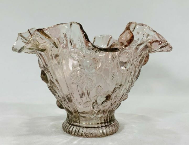Vintage Home Interiors Glass Lamp Shade Fluted Ribbed Cherries Light Plum/Rose