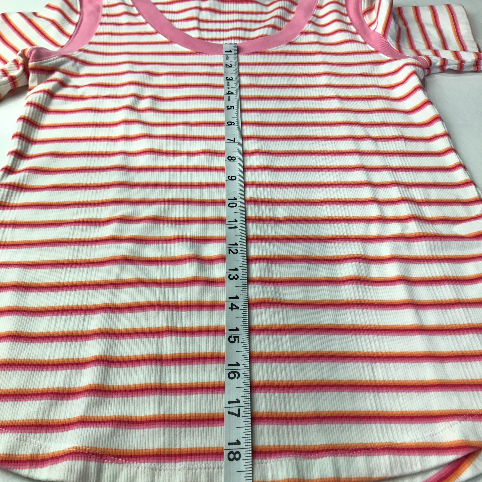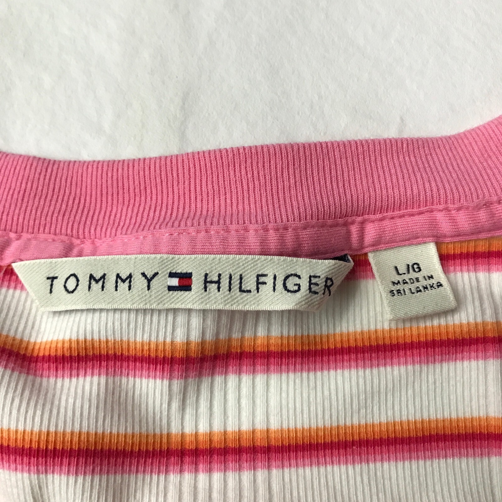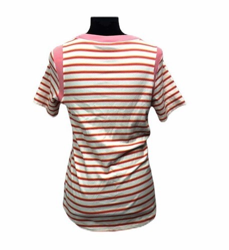 Womens TOMMY HILFIGER Short Sleeve T-Shirt White w/ Pink Orange Stripes Large