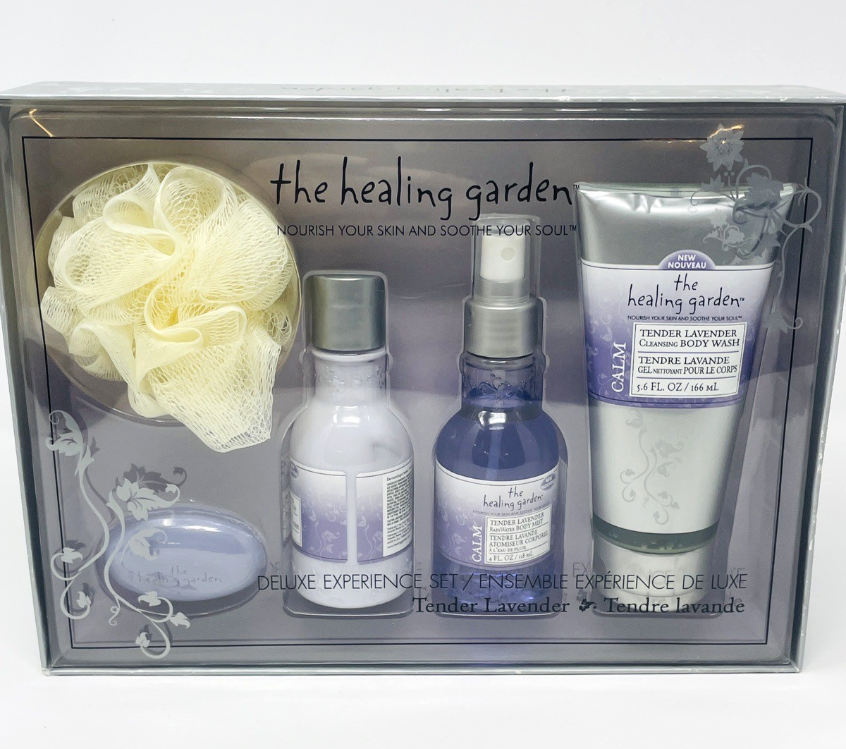 The Healing Garden Calm Tender Lavender Gift Set Soap Body Wash Lotion 4oz Mist