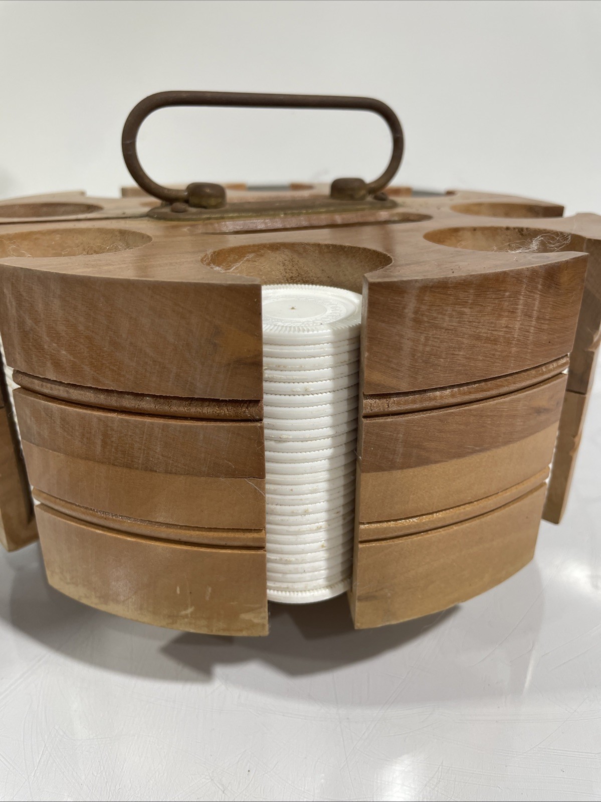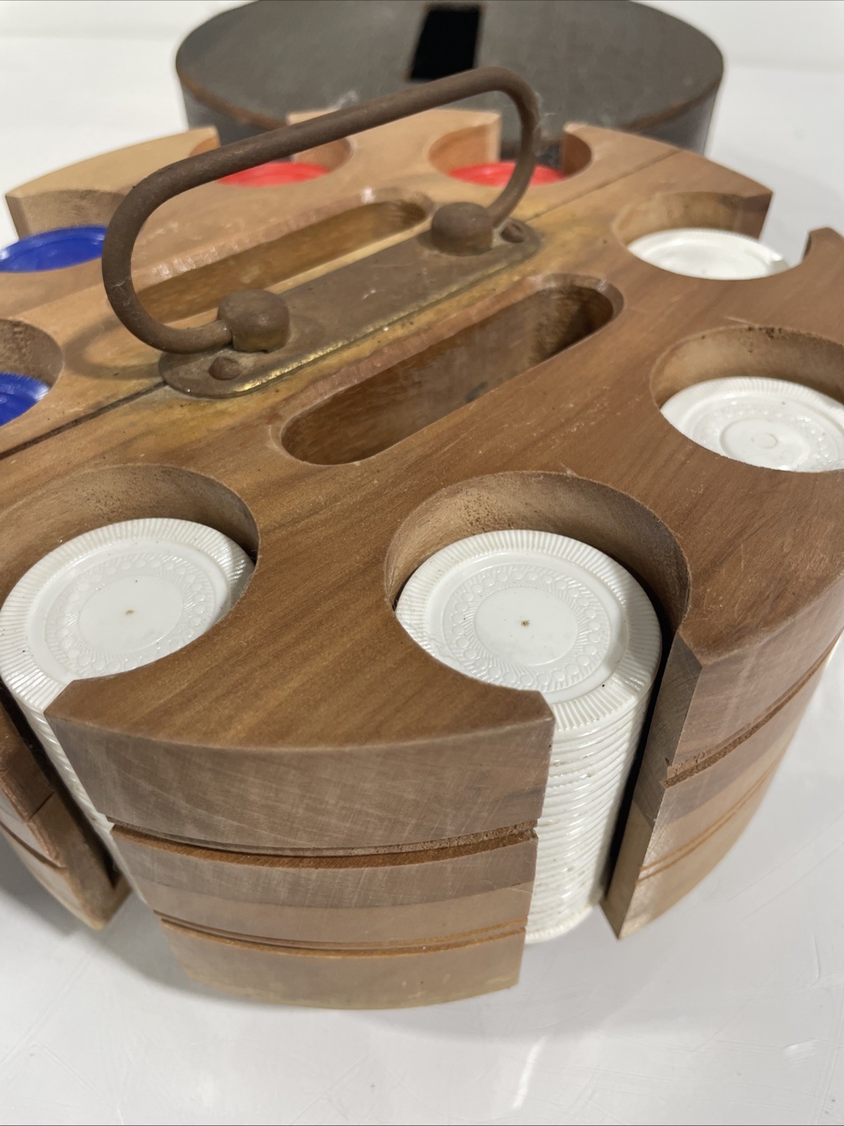 Vintage Poker Chips w/ Wood Caddy & Round and 48 similar items