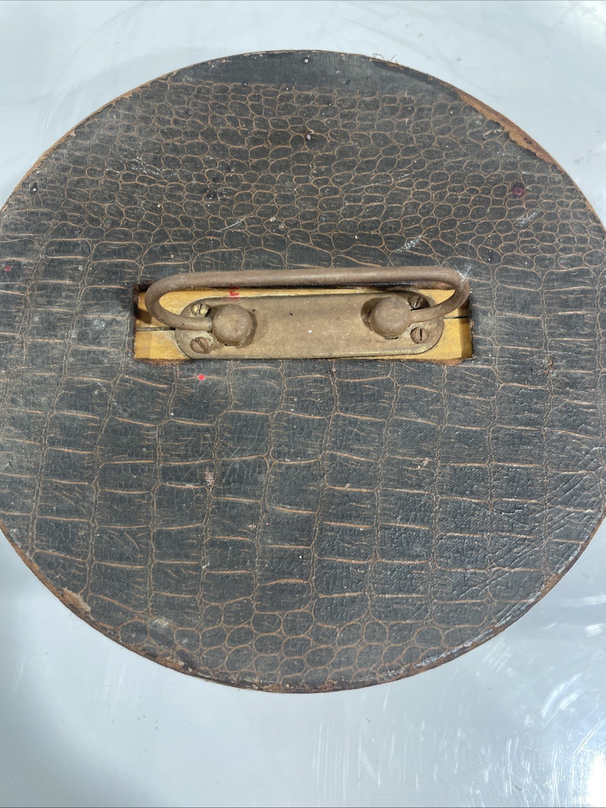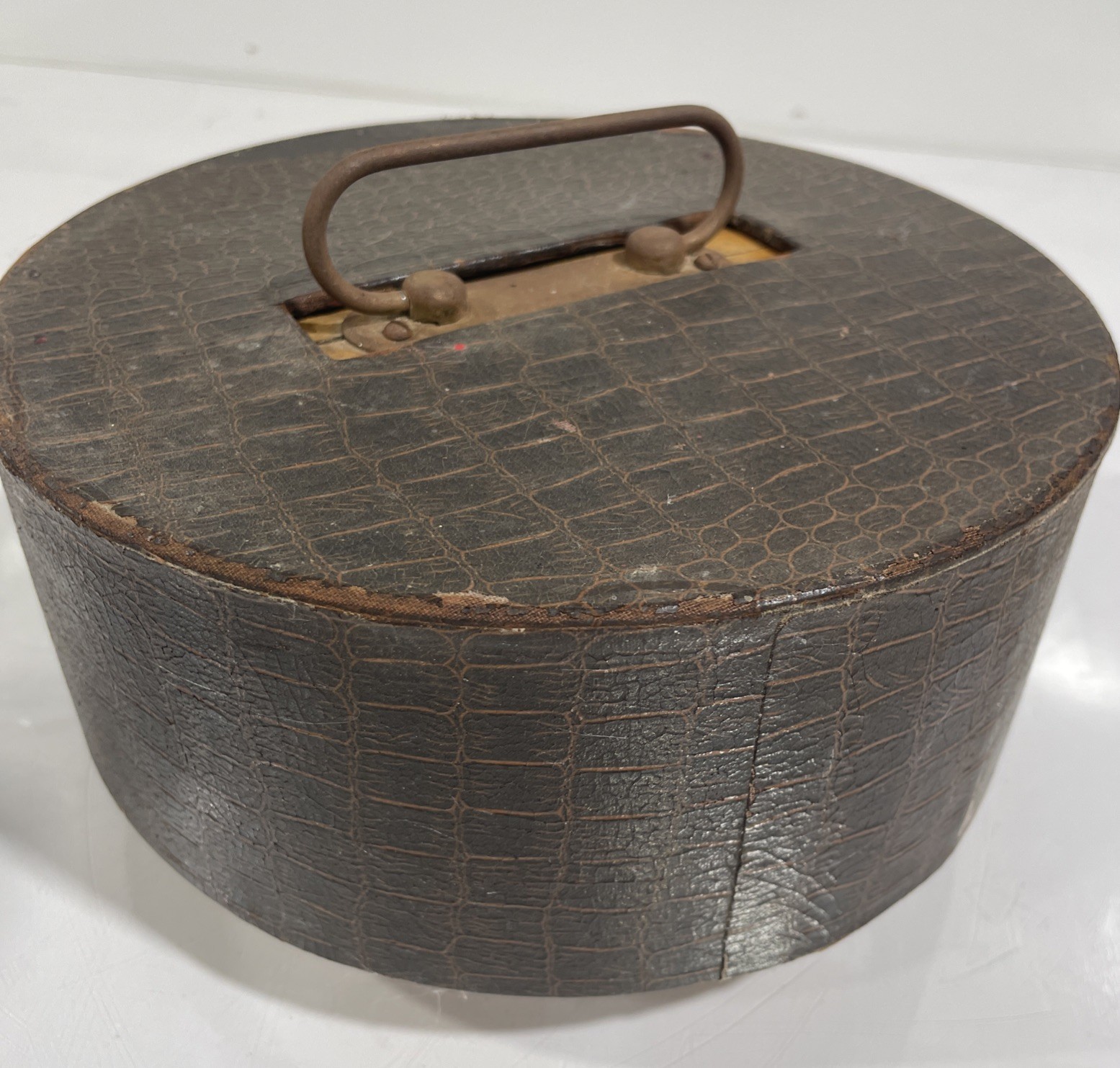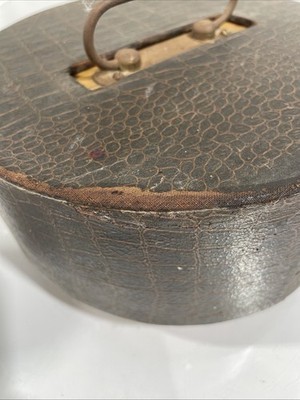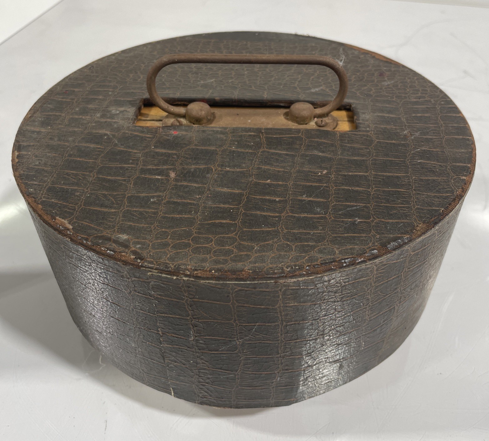 Vintage Poker Chips w/ Wood Caddy & Round Faux Alligator Case Red White Blue