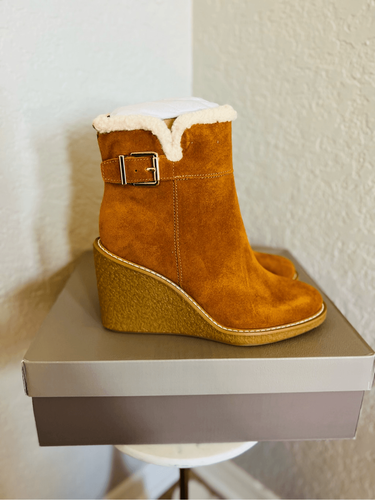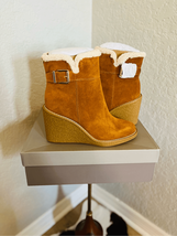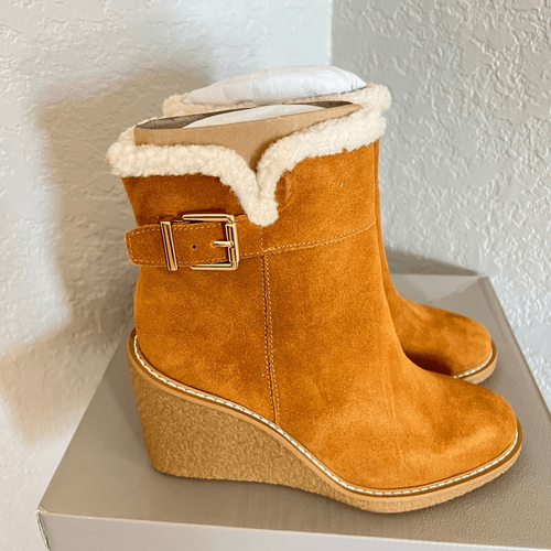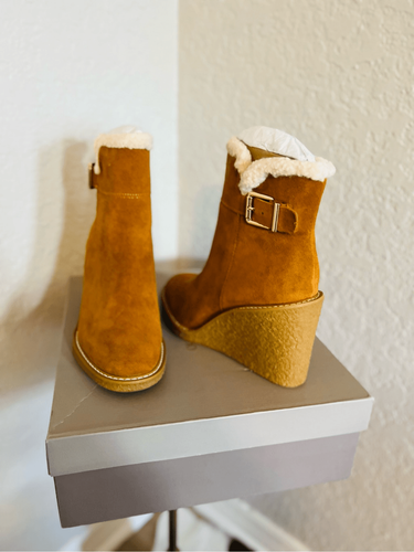 FRANCO SARTO Ulayna Water Resistant Suede Fleece Wedge Bootie, Brown, 11, NWT