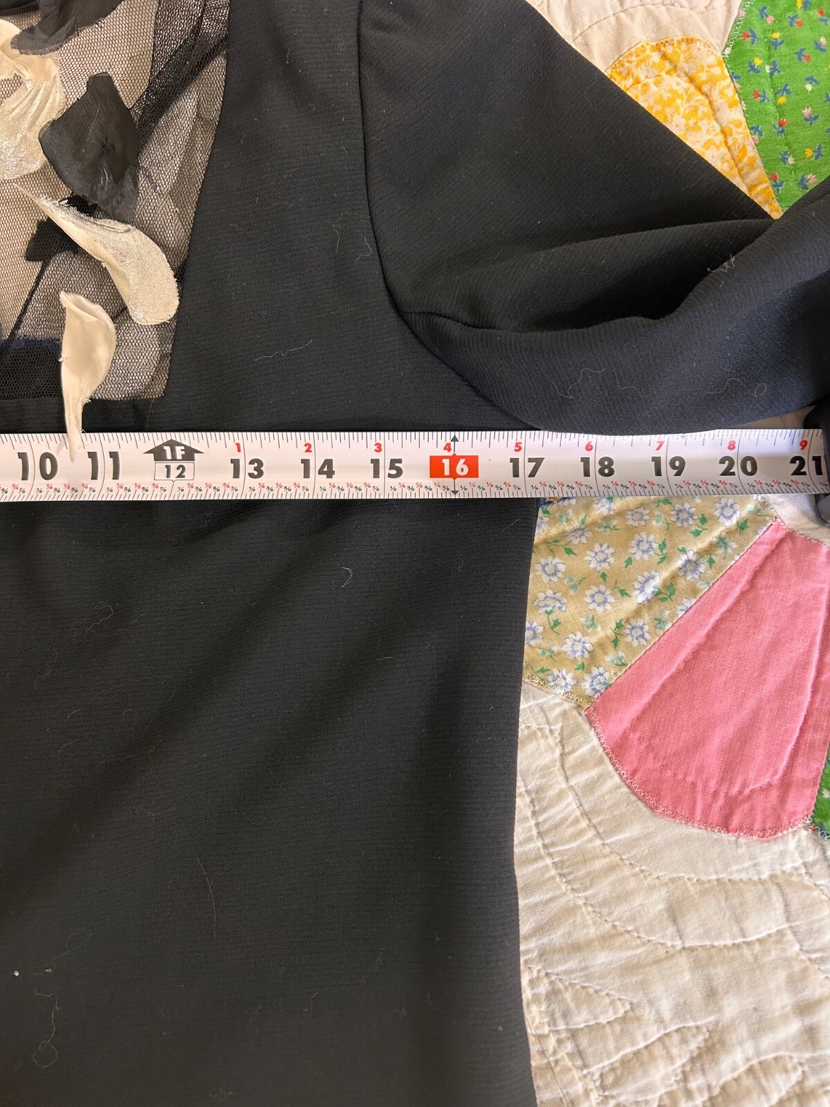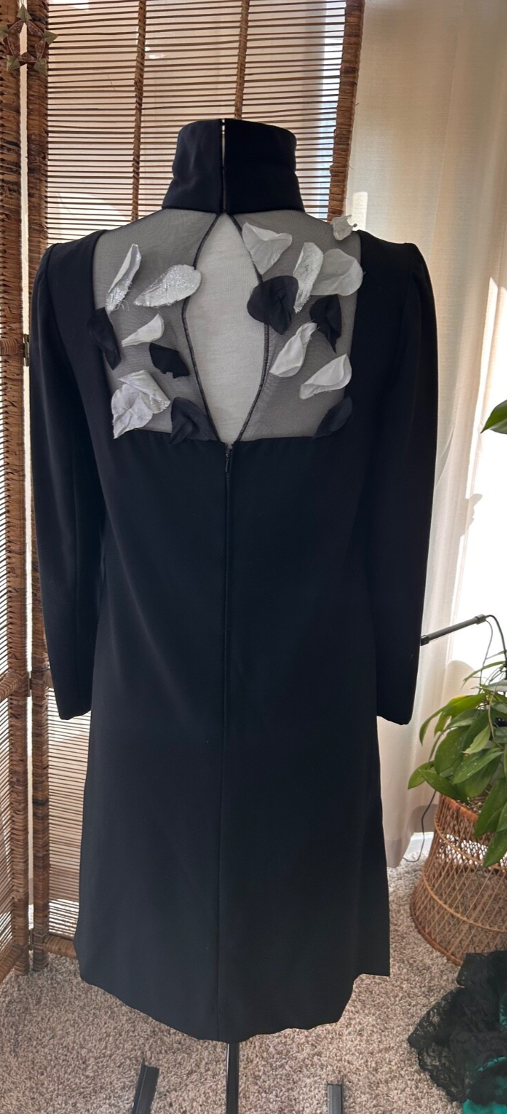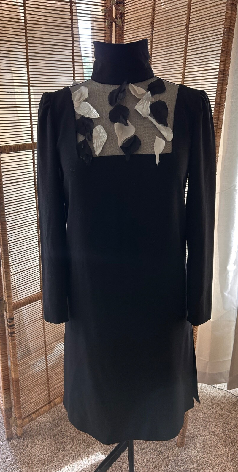 Vintage Courreges Paris black silk "leaf" sheath dress Medium