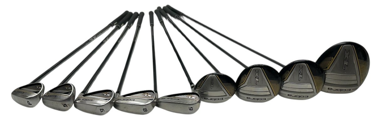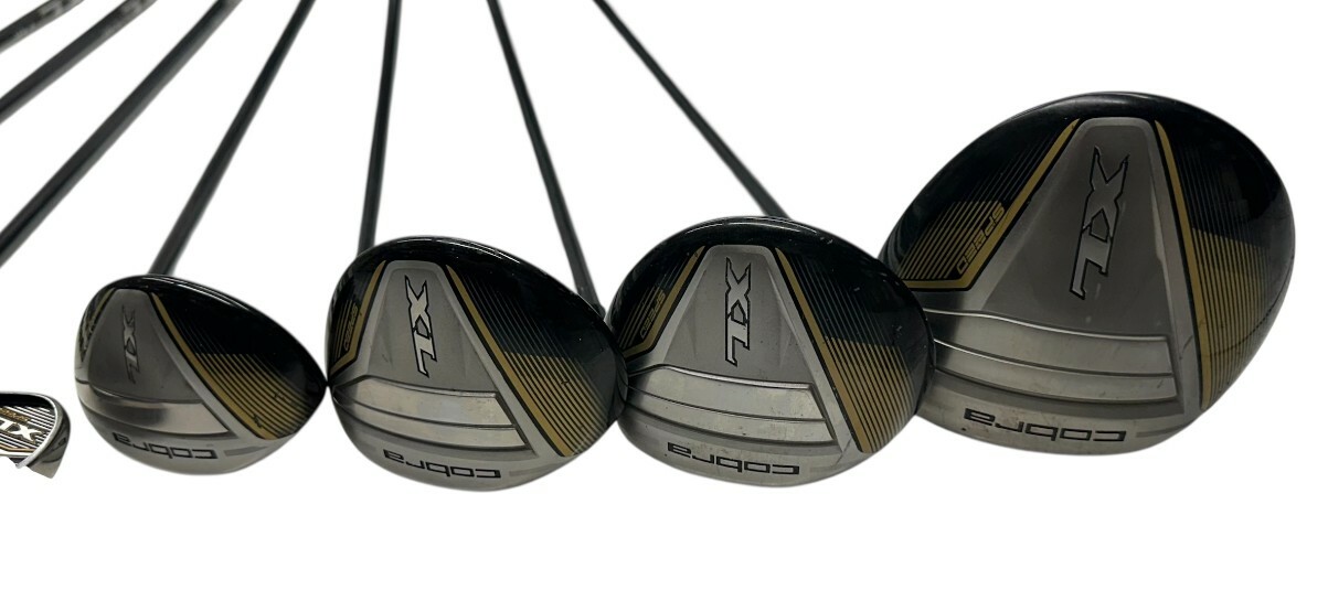 Type: Golf clubsBrand: CobraModel: Speed XLSize: 9pcColor: Grey/Black/goldCondition:UsedNotes:10.5 Driver has head needs to be reset into place.