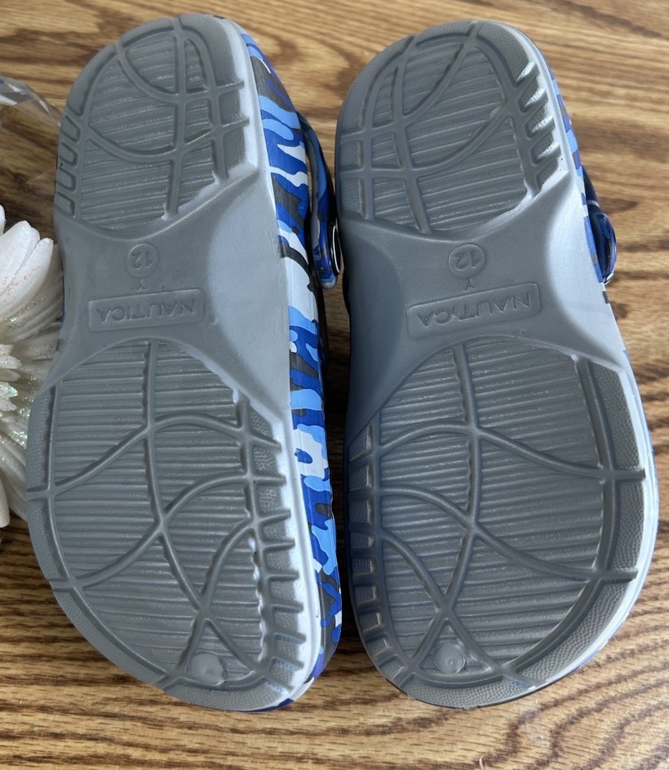 NAUTICA Boys Blue Camo Waterproof Strap Croc Shoes Sz 12 Adjustable Fast Ship