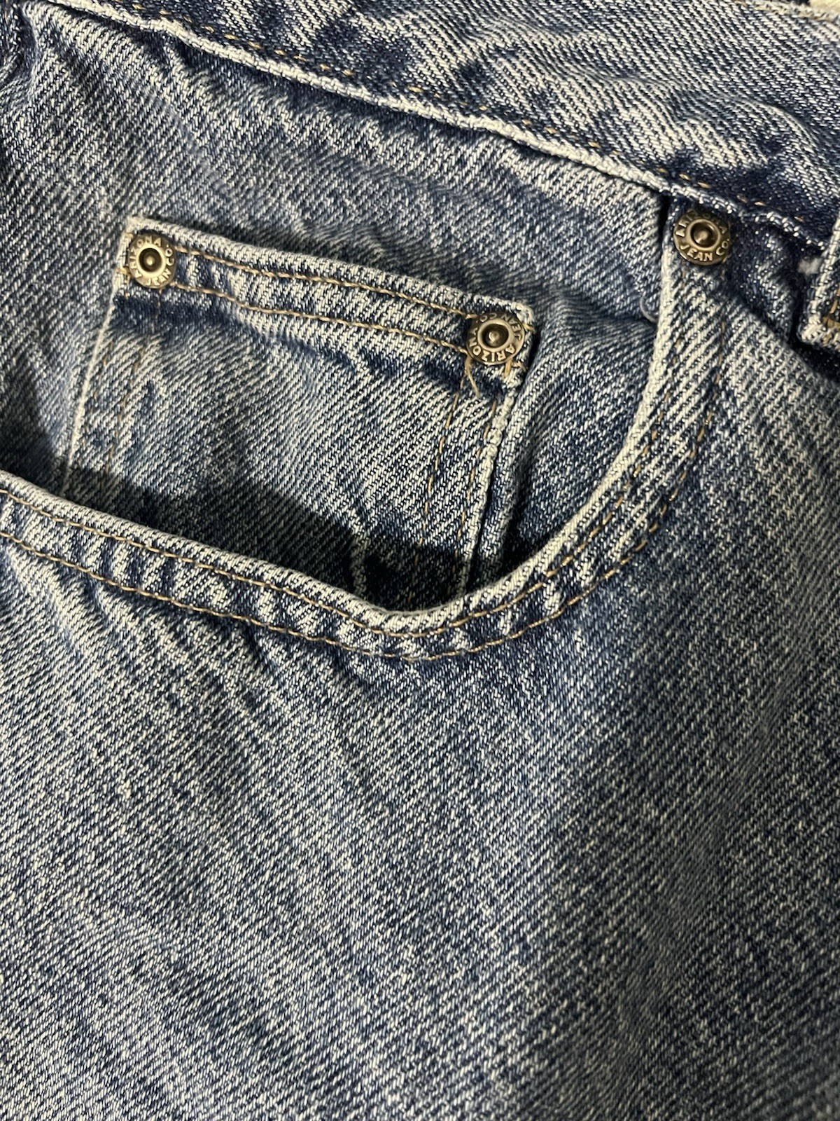 These Vintage Arizona Jean Co denim shorts are a stylish addition to any man's wardrobe. With a faded blue color and a classic solid pattern, these shorts are perfect for a casual occasion. Made of durable cotton fabric and featuring a zip closure, these mid-rise Bermuda-style shorts have a flat front and a 5-pocket design. The vintage design and Y2K aesthetic make them a unique and trendy choice for the spring, summer, and fall seasons.