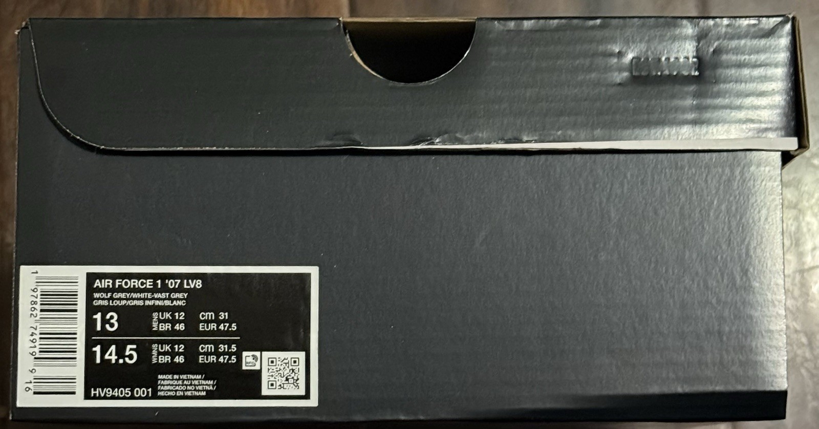 NEW Nike Air Force 1 '07 LV8 Wolf Grey Patent Leather HV9405-001 Men’s Size 13