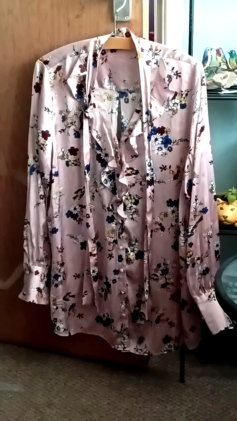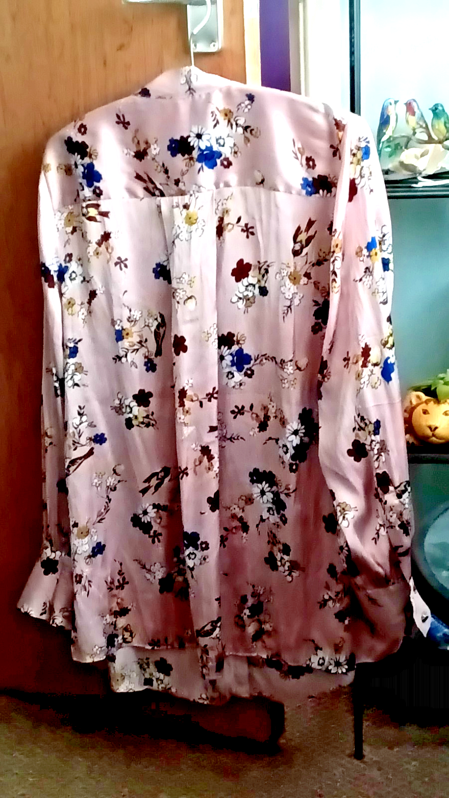 MARKS SPENCER size 18 pink blush multicoloured long sleeve blouse with cuffs, v neck and tie front. This polyester blouse is approx 60 cm in length and is washable at 30c.